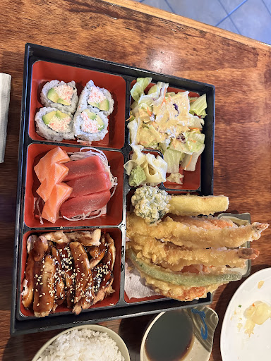 Read moreWas in the area on Thursday and found a lot of shops closing/closed and found this little sushi restaurant. Inside is pretty unassuming with homey decorations and furniture. It’s definitely a family run business. They have a lot of different rolls and combo for bentos/rice bowls. We ordered the bento 3 with chicken teriyaki, sashimi, and tempura. It also came with some california roll pieces, rice, salads, and miso soup. We also got the furagu roll and honey roll. We also ordered the edamame that came out nice and steamed. The honey roll was okay, we didnt love the cucumber in it. The furagu roll was really good though. Both rolls had decent cuts of fish. The bento was really worth it. Definitely meant to share it with all the stuff it came with. We couldnt even finish the whole thing. While the presentation and cuts were not the best, the food was still tasty and decent portions. Service was also quick and helpful. Definitely seems like a lot of locals come by and are good friends...