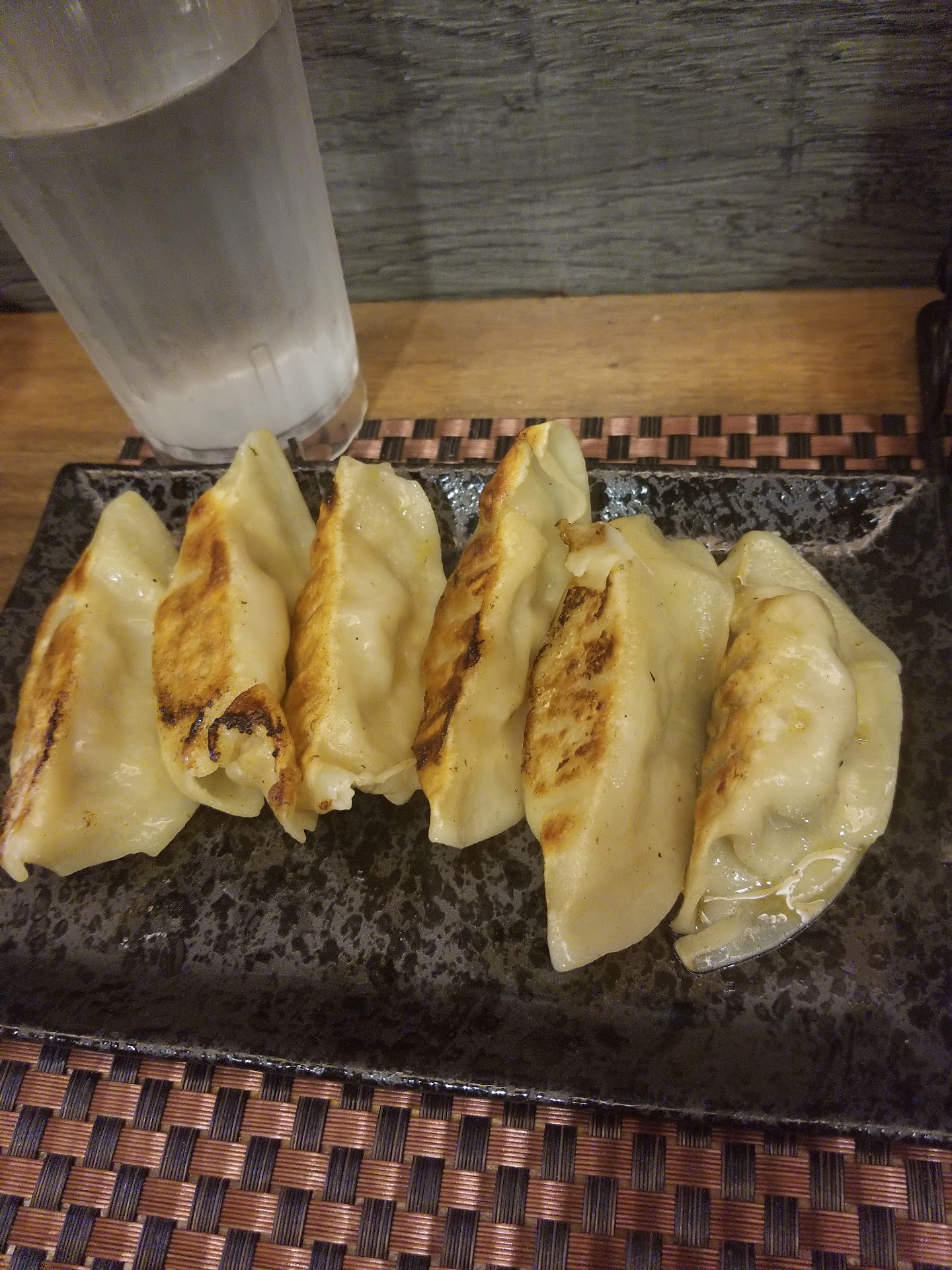 The gyoza was slimy and chewy even if its Chinese style pot stickers they are hotter and firmer than these were. With that said also most gyoza I've ever had at japanese places is fried and crispy on the outside. Idk if it's a regional style they chose or just going with more Chinese style potstickers but it's not like gyoza I've ever had and that's not good. The price was a bit off too ive gotten ether more gyoza for that price or paid less for the same amount.