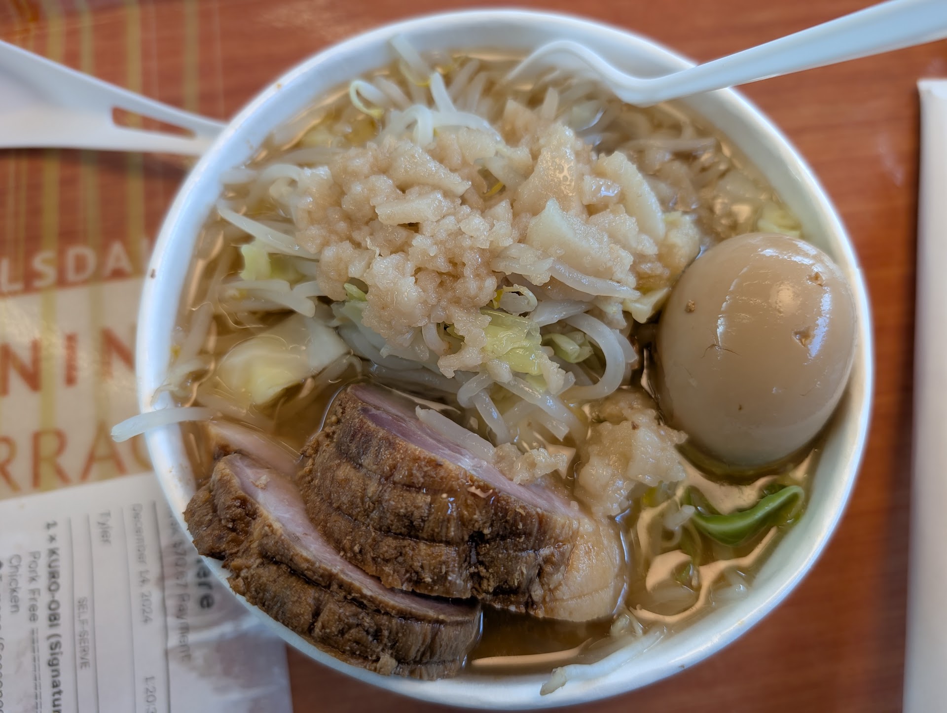 Read moreWow, this place has gone sooo downhill, to the point that I will never eat there again. The Kurt-Obi bowl used to be INCREDIBLE, and I would come to the mall just to eat there OR get take out, and even with taking the ramen home to eat, I could happily anticipate what I knew was going to be really good ramen. They killed the menu, took away most of the variety on their menu. Gone are the warm, soft & fresh buns with crispy & tasty chicken tucked in, which we always enjoyed. The Kurosawa-Obi bowl is not even close to what it used to be, there’s no more bamboo, no more spicy yummy splash of red sauce on top, it’s just ramen, a TINY bit of cabbage, a TON of bean sprouts, fatty/cheap meat, and a spoonful of mashed up fat plunked on top, (this is a new thing since menu changed) I suppose in attempts to bring up the flavor profile? They now offer complementary to-go cups of minced garlic, which they never had before. Maybe they’re trying to disguise the fact that the food is terrible. It was a huge greasy disappointment, especially considering the price. Never again! I’ve tried the Kuro-Obi bowl twice since the menu was decimated, and I’m no longer a customer. Really sad because they had such a terrific menu, and we frequented their restaurant...