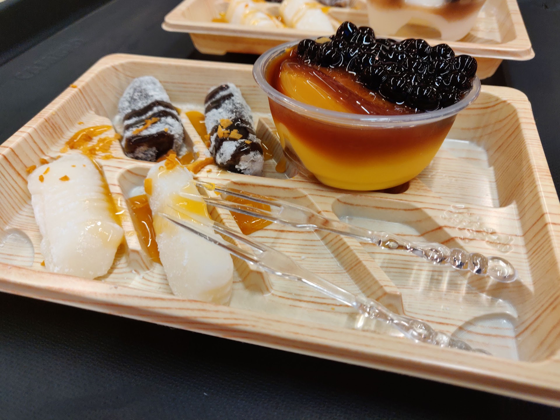 The desserts here are good, but not worth the price. I have tried a few things from here, which are their black sugar boba fresh milk, their fluffy ube smoothie (with boba) from their ube series, their strawberry green tea (with boba), and their medium mangoberry shaved ice. For the boba drinks, I have felt that they are just... eh. For what was paid, I didn't particularly enjoy my drink. None of them fulfilled me, it always felt like there was something missing from them; the ube smoothie didn't feel smooth enough, the strawberry green tea didn't feel sweet enough, and the fresh milk was actually too sweet. It's a shame you can't customize sweetness level, at least when ordering from the self-serve kiosk. The boba pearls themselves were also not chewy or flavorful enough for my liking, and the pearl-tea ratio was never that great either. I can get better boba drinks at other places for lower prices.