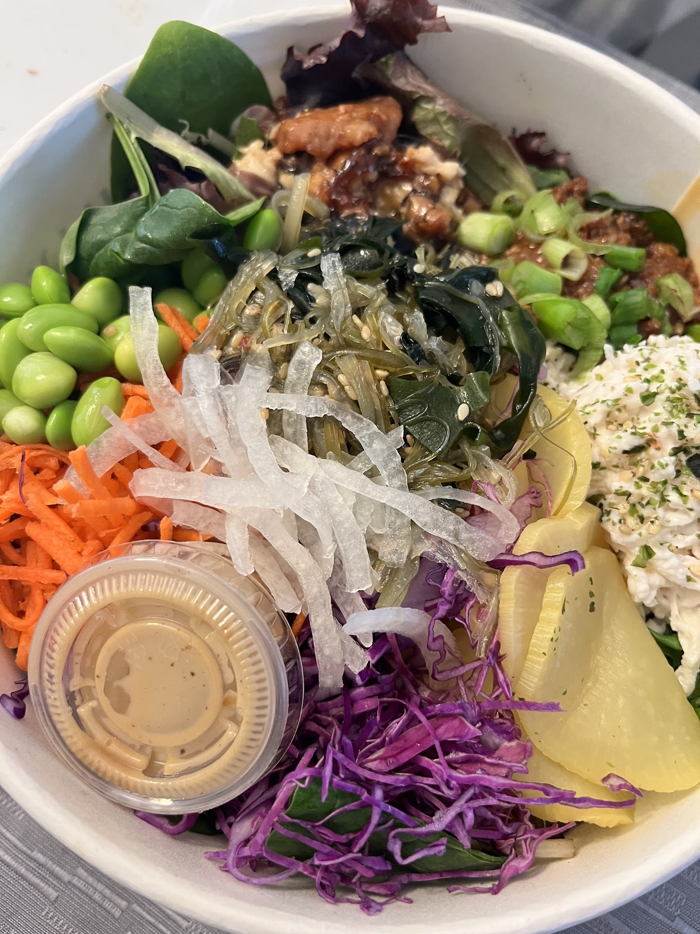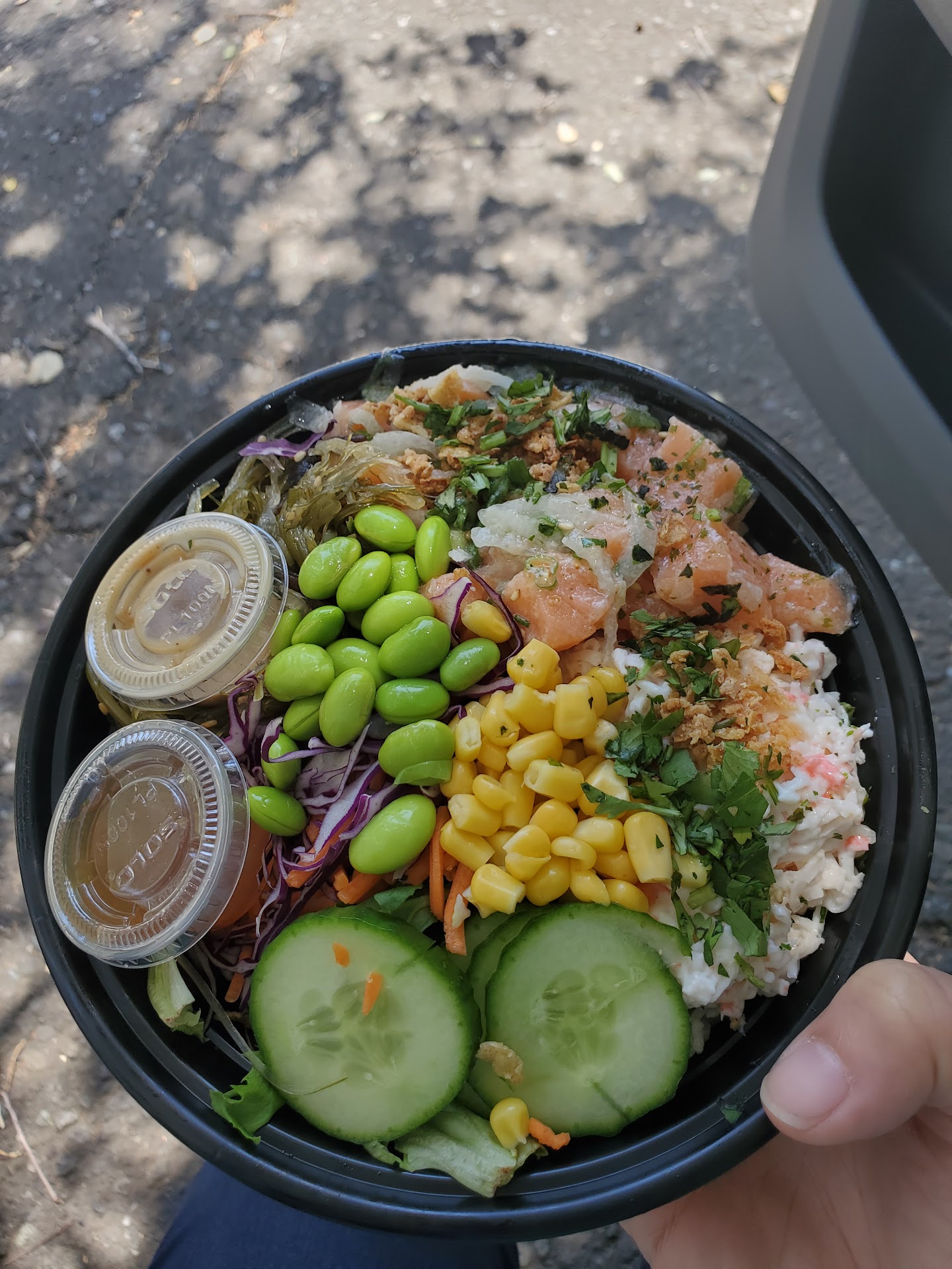 I got a "build your own" poke bowl with salmon, Shio Koji poke sauce, and "Original-Non-Oil" dressing.
