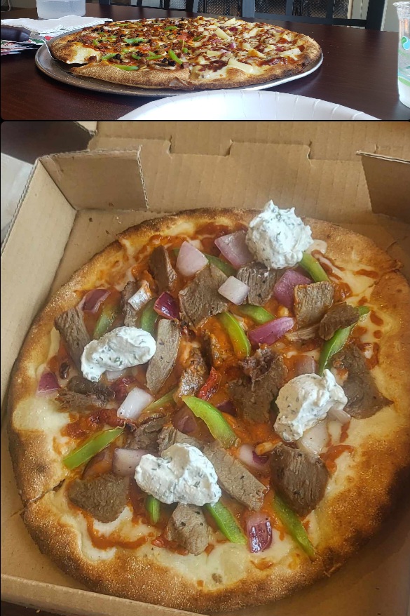 Read moreWe called to see if they had outdoor seating because we have a small miniture poodle . Yes, they can set up a table outside for us but stated it is so hot out & and yes, it was in the middle of the day yesterday. (SO VERY HOT ). When we arrived, the owners were husband & wife and saw our poodle. They said they are dog friendly and dog lovers. There were no customers at this time, so they let us sit inside. They gave our poodle a Trader Joe's dog treat, to our surprise, our very picky poodle loved it. The owners were very friendly, and we got to speak for a while. Then came the AMAZING PIZZA . It was perfectly cooked. The crust was thin & crispy, just like we like it. We got to eat this delicious pizza we ordered a 1/2 -1/2 pizza a #2. Sausage pepperoni, mushrooms, bell peppers, black olives & #11. BBQ Chicken Pineapple, Red Onions. Their sauce and sausages are homemade. It was so good. Then we had to try their #8. Lamb, ricotta, red onions, bell peppers, sun-dried tomatoes, WOW! what an explosion of flavors. They cook & slice up their own lamb shanks. My wife & I are pizza lovers, and this place is at the top of our list. We have definitely found a new place and will be back for more. Thanks for the...