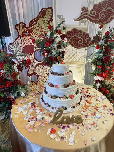 The baker arrived with an assistant to the venue on time and assembled each layer on site. He also piped the decorative flowers on site, which honestly was pretty cool to watch. He also helped us put our cake topper. Our guests loved the cake, taking photos of it and eating it!