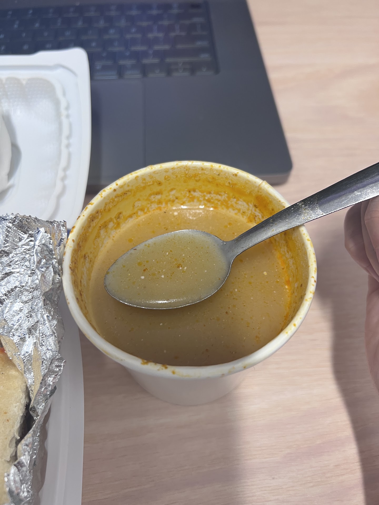 She didnât even provide a spoon with the utensilsâhow am I supposed to drink soup? On top of that, the food quality was mediocre at best. The soup was basically water and looked nothing like the menu photo, and the meatball sandwich was dry and hard.