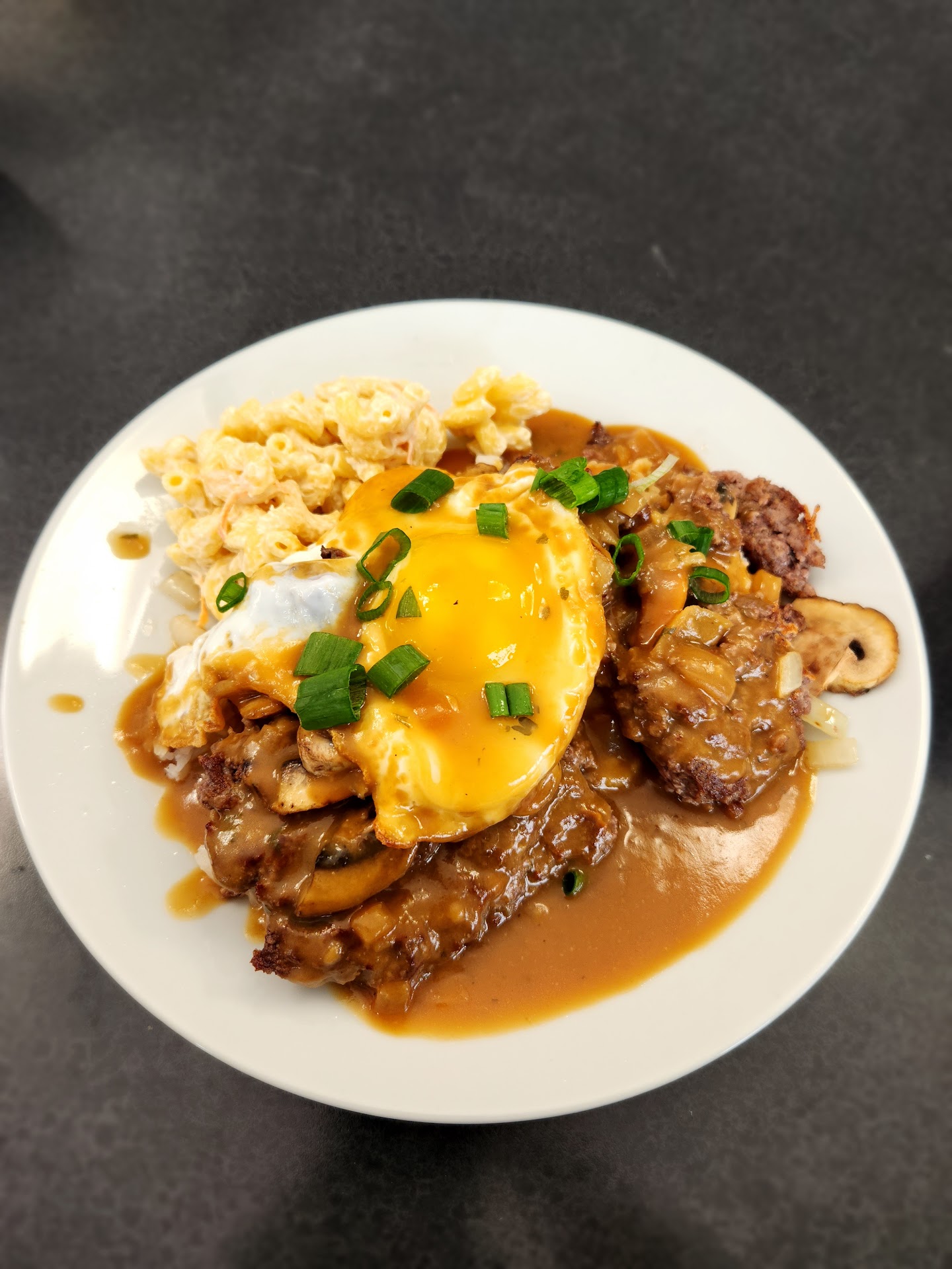 Influenced by IG and decided to come on a free afternoon. Located on el camino with a decent sized parking lot next door (just be sure not to pass by it). Inside is a simple cafe with spacious seating with big windows that let in a lot of natural light. Even for a weekday brunch time, we noticed a significant amount of people coming in. While not exactly busy and crowded, it was still a lot for what we expected. We ordered the loco moco, macadamia nut pancake combo, and tuk fries. I loved the loco moco. The gravy went great with the rice. The beef patty was cooked a bit more rare than I expected, but still tasted really good. There were also some mushrooms in the sauce. I got over medium eggs, but they came a bit closer to over easy, but honestly the runny yolks were much more suited for this dish. It also came with a small side of mac salad. It was a little watery, but was refreshing as a side. I would highly highly recommend the macadamia pancakes if you prefer sweet items for breakfast. I usually don’t prefer macadamia nuts but I loved how it was in the pancakes. The pancakes were super fluffy and honestly were impressive even for a simple dish. You can order the combo with a type of meat., bacon, sausage patty, spam. We got the sausage patty which was pretty tasty. The tuk fries were okay. The sauce was good, reminds me of sriracha mayo. The steak pieces were a bit tough. Can pass on this. Service was a bit slow. We noticed it took a long time for some peoples food to come out, as mentioned in other reviews as well. While it didn’t take a very long time for our food, it was still a noticeable wait when there weren’t that many people inside either. However the food was really good and I would def come again for...