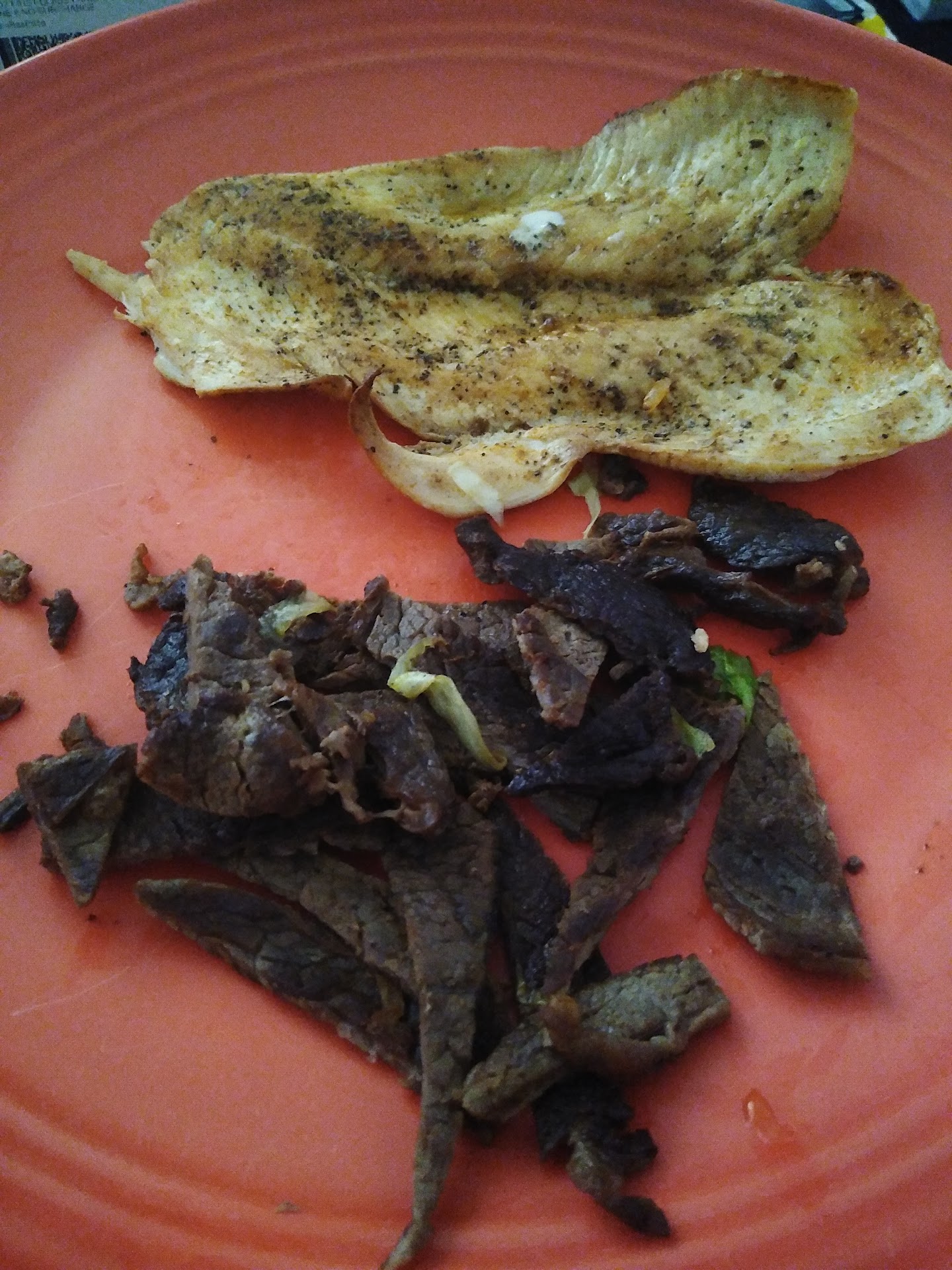 The steak was not fresh looks like Gandhi slippers