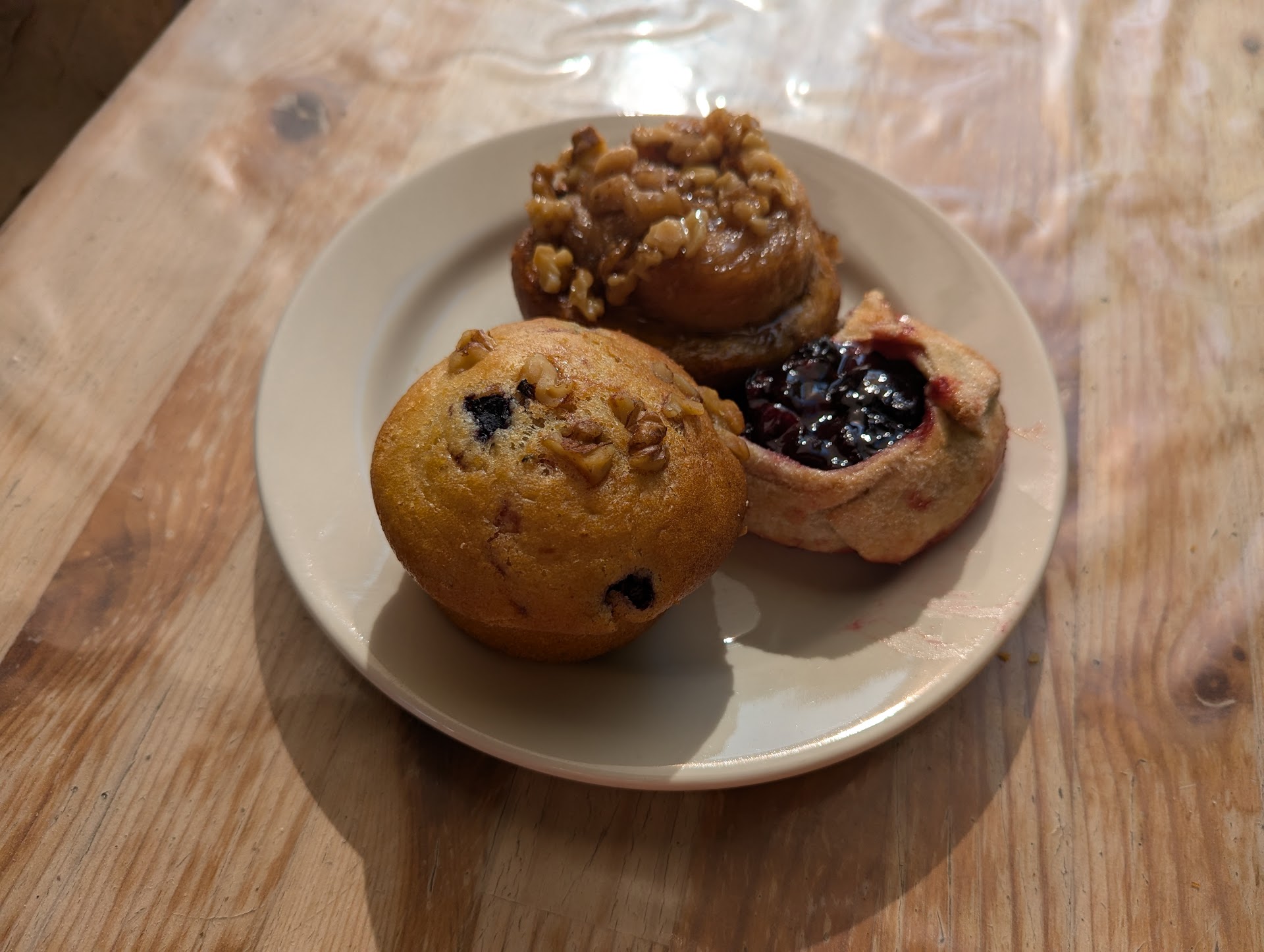 Worth finding! Coffee and hot and cold sandwiches available but the variety of baked goods was so creative ⦠I went for the sweets⦠the banana Meyer lremon bread/cake is a standout. And I loved loved loved the whole wheat very muffin.