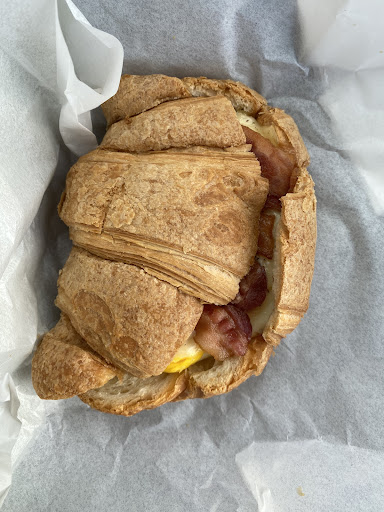My personal favorite is the breakfast sandwich that includes... sourdough bread, egg, bacon(or sausage, depending what kinda day it is) and cheese. It’s out in a few minutes and ready to enjoy! I love how they serve it, it’s so asymmetrical and pleasing and it’s cut across!