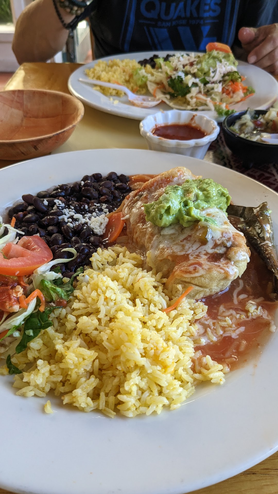 Had a deliciously flavorful dinner on the patio with my husband and 8 month old son on a Sunday evening. Immediately we were greated by friendly staff and seated outside. We used a highchair that was available which was appreciated since we wanted to have a meal all together with our 8 month old son. The service was amazing we got chips and salsa with our menus. I got a vegetarian tostada and my husband got cheese enchiladas. It was like magic how quick we got our meals. Everything was so delicious and my son finally got to sit and participate in our meal rather than watch us eat/hide what we are eating now that he's so interested in food! We gave him his first litte plate of refried beans, rice, and tastes of toppings. He was happy as a clam and slept better than he's ever slept before. Our server was interactive and kind with our little guy and being a mom that's a bonus when choosing a place to eat out. It was reasonably priced for how good the food is. We look forward to making this a new regular family...