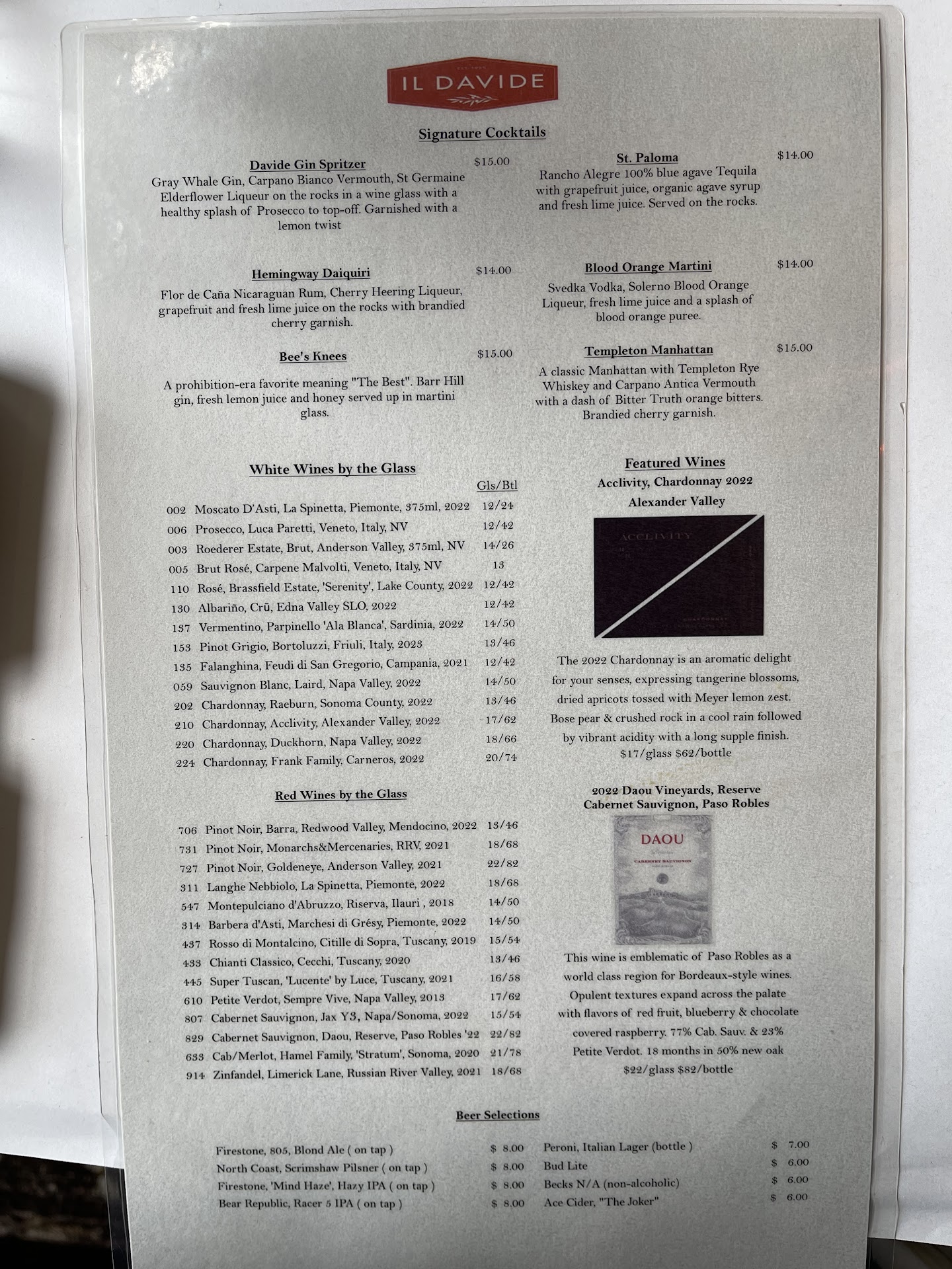 It is obvious to the reader that Il Davideâs food is delicious and the ambiance is lovely, so I would like to highlight the class and generosity of the people who work here.