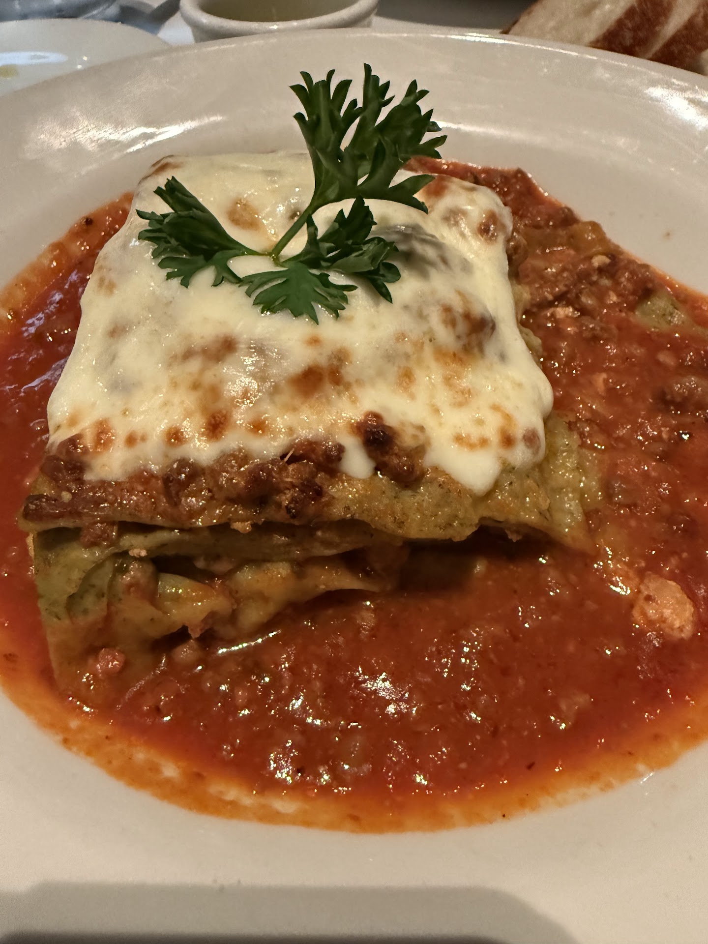 In terms of atmosphere, the restaurant felt overrun by patrons, the management apparently not wanting to turn away paying customers. There was a party of several men that had been watching sports at the bar, and had now migrated over to a dinner table - they were loud and obnoxious - not what one expects in a fine dining restaurant. No one suggested they tone it down.