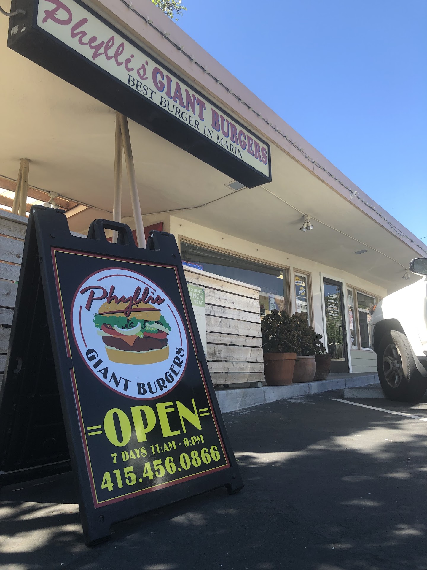 Read moreA small but welcoming burger stop. Phyllis’s has excellent customer service, they’re fast on the orders and the food is amazing. My order consisted of a giant burger topped with pesto sauce, two giant burgers with bacon, a large garlic fries and small regular fries paired with a coffee milk shake, mint chip milk shake and a vanilla milk shake. The burger was a great choice I’ve never had a burger with pesto before but it’s definitely something that I’ll be recommending to future customers. The shake on the other hand tasted a little bit too much like black coffee however the mint chip specialty milkshake was delicious. Between three people we weren’t not able to finish the garlic fries you get pretty big servings. The small here is a large at other places so keep that in mind when you’re ordering. There is seating indoor and out but it is limited but there are plenty of parks to stop and have a picnic near by. I will most definitely be coming back to this establishment for years to come. Thank you for the amazing...