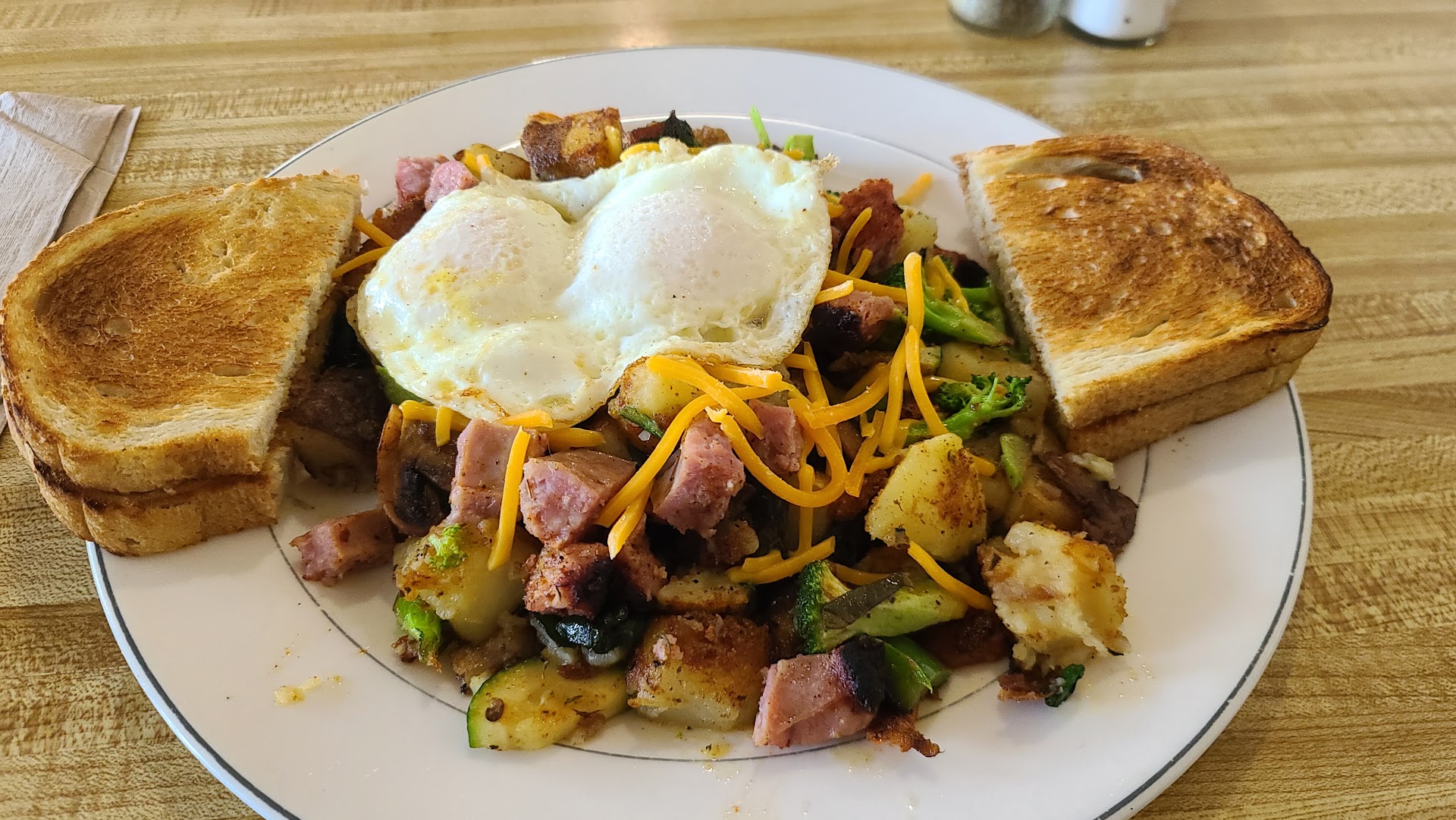 Read moreSeriously an OUTSTANDING breakfast. Ordered the Caribbean Breakfast and was very pleased. A huge plate of well seasoned potatoes and fresh veggies, with a huge amount of hand cut chunks of real ham (not sliced/processed!), Some cheese and eggs to order on top. You won't go wrong here. I'm visiting from out of state, but when both the Fire Department and the Police also came in for food, I knew this was the place the...
