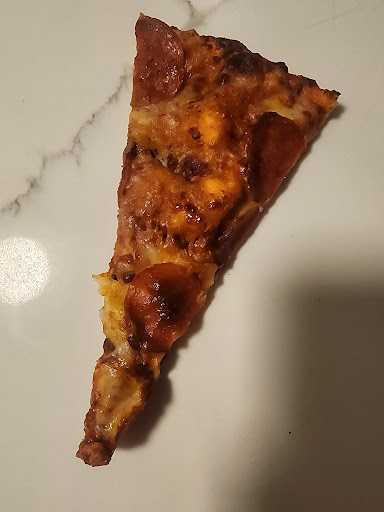 The pizza was bland, barely had any cheese, and tasted like it had been sitting under a heat lamp for hours.