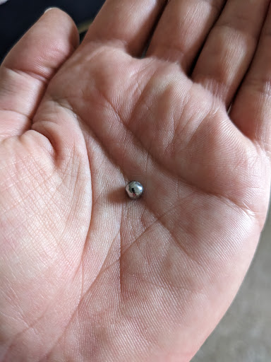 Had been meaning to try this place for a while now, really wish I hadn't. Got a carnitas super burrito to-go, got it home and within a few bites felt something really hard stop my bite. First thought was it must be a stray bone chip like sometimes happens with meat products... But it felt way too hard even for bone, so I dug out the culprit only to find a small steel ball! See the pic, no joke. This was a first for me at any food joint, & will be the last for me at this place. To be thorough w my review, up until that point the burrito was meh... I've had worse but not by much. Bland flavor left much to be desired for the price. I'll drive a few exits further next time for a decent meal.