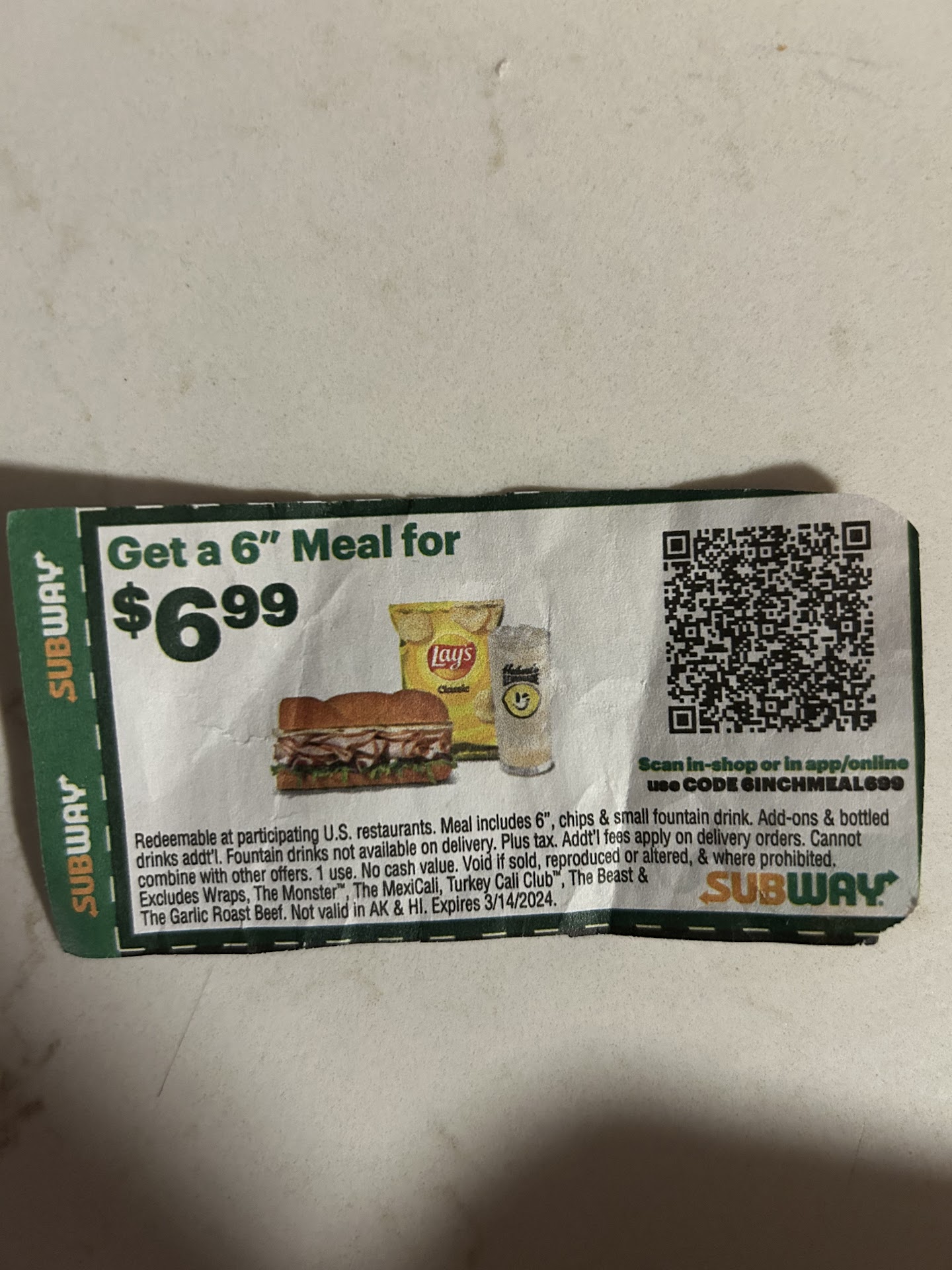 Read moreThe owners of this subway must be very cheap the location hasn’t been updated in 15 plus years that was acceptable but the employees cannot get a sandwich order correct for the life of them sometimes. This I would get except I mobile order so it’s very clear and also I order THE SAME THING EVERY SINGLE TIME! Also the guy that runs the shop on weekends is very unsanitary and throws together quite the shim sham of a sandwich Edit: just had another horrible experience at this location the franchise owner Lucky has no customer service experience whatsoever and decides arguing with customer is a better path than just refunding food that...