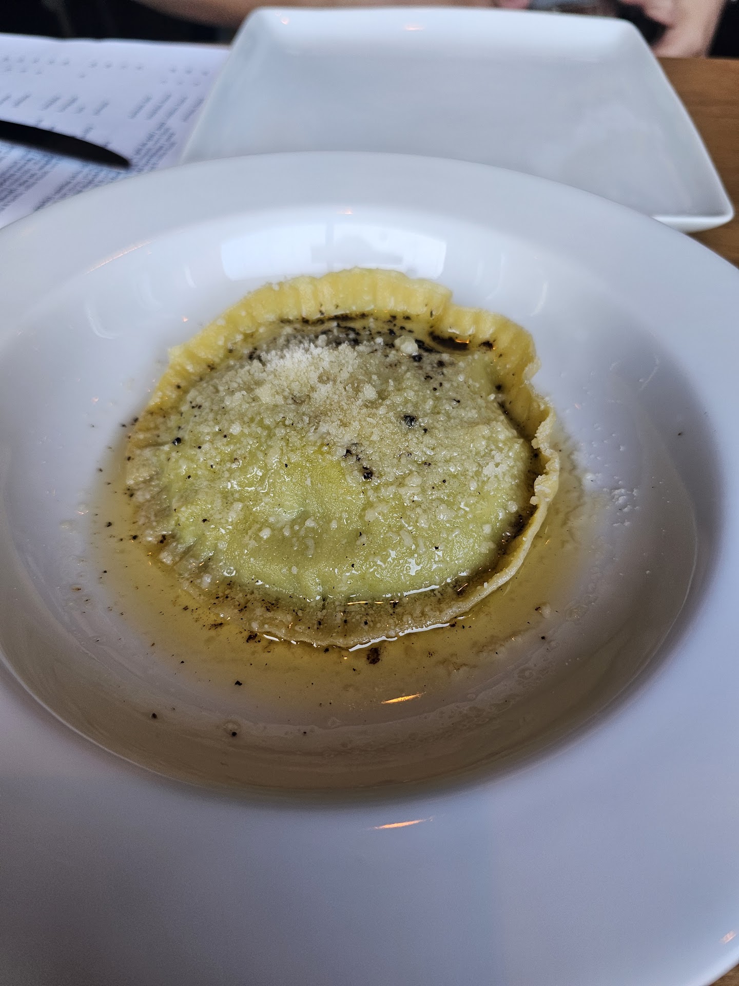 We went to TKT for an early dinner after a day of work. We were here twice before and loved the food, wine, and service: nothing extraordinary, but good quality, quiet and straightforward. My husband ordered fish, and I ordered the pasta that I ordered the other two times: pepper infused tagliatelle, mentioning no dairy (no butter, no cheese).