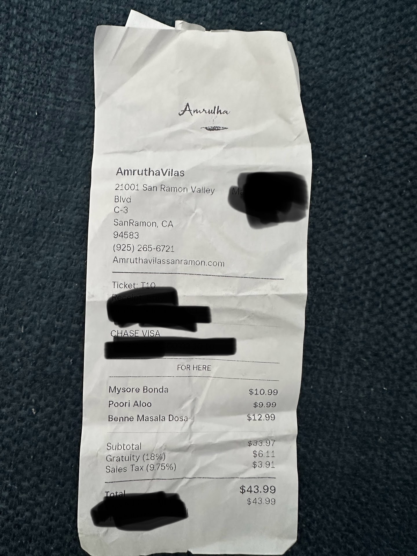If you’re in the East Bay and want to experience the true taste of South India, I highly recommend giving Amruthu Villas a try. You won’t be disappointed—especially if you order the...