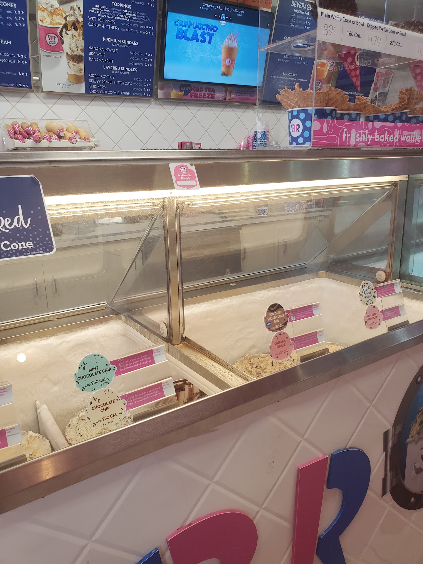 Like all BR's they have a good selection of ice cream and a medium selection of toppings with a few tables inside and outside where you can enjoy your desert. This place has more room between the counter than the one in Dublin so you aren't crowded when there are a few people waiting to be helped.