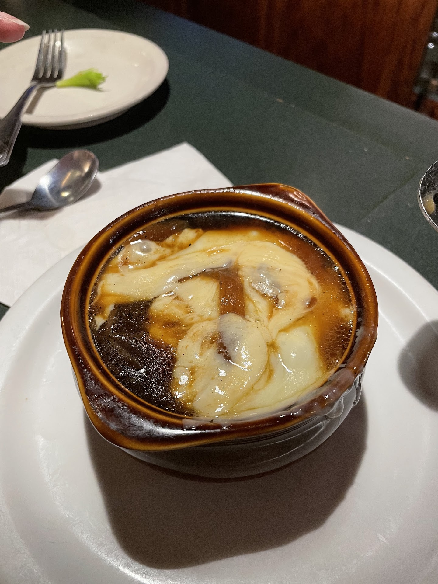 My main (which included mashed potatoes & creamed spinach) was the “gourmet cut” of Prime Rib, medium rare. To their credit, it was a thick slice, & cooked a true medium rare, with au jus & horseradish on the side. BUT easily 4-6oz of the 16oz “gourmet cut” was just pure fat. Not marbled thru the meat, but rather HUGE inedible chunks that I had to saw off & put on a separate plate. I’m glad I ordered the largest portion, or I would have likely still been hungry. It was also completely flavorless/ unseasoned. The outside “crust” tasted like literally nothing. Cut to me adding a ton of salt/ pepper, au jus & horseradish to get it “up to snuff”. This entree was $41.