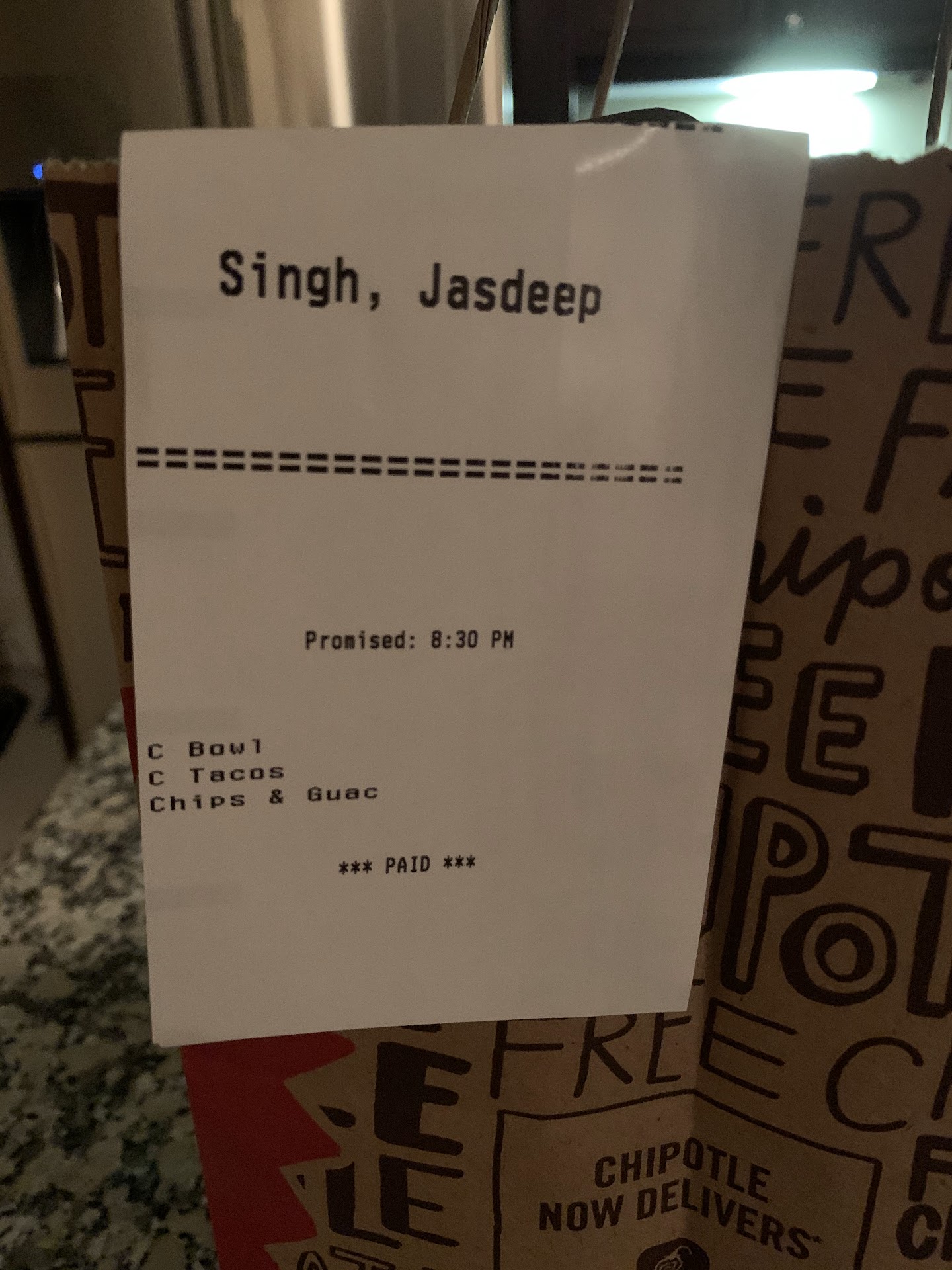 I contacted Chipotle support around 8:30PM and they never picked up. I wanted to cancel my order and get my refund but I was stuck eating a late dinner tonight with not all of my food even here.