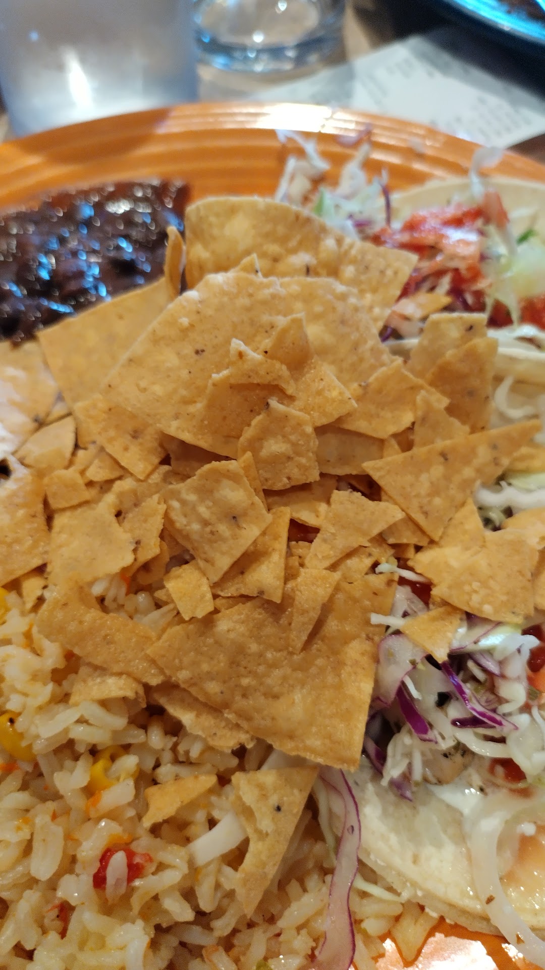 My buddy and I both ordered the 3 enchilada platter. When the food came out, it was COLD and mostly flavorless. The enchiladas were small and missing spice, the rice was bland and cold too. The refried beans were bland and blah. There was a "few" tortilla chips stuck in the food on top of the plate (finally some chips). Not sure broken chips are a traditional Mexican garnish?