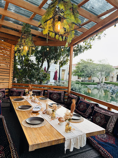 We came for a girls’ night with seven of us and sat at the Afghani floor table by the water. The setup was absolutely gorgeous – soft lighting, the sound of water trickling from the nearby waterfall, the ducks quacking and the warm scent of freshly grilled kababs drifting through the air made it feel magical and transportive. The staff went above and beyond – the owners are some of the kindest people I’ve ever met. You can tell how hard they are working the minute you walk in, and their passion shows in every detail. They kept checking on us, explaining dishes, and offering recommendations. They even let us order family style, and the platters arrived like a colorful feast, beautifully presented and almost too pretty to eat.