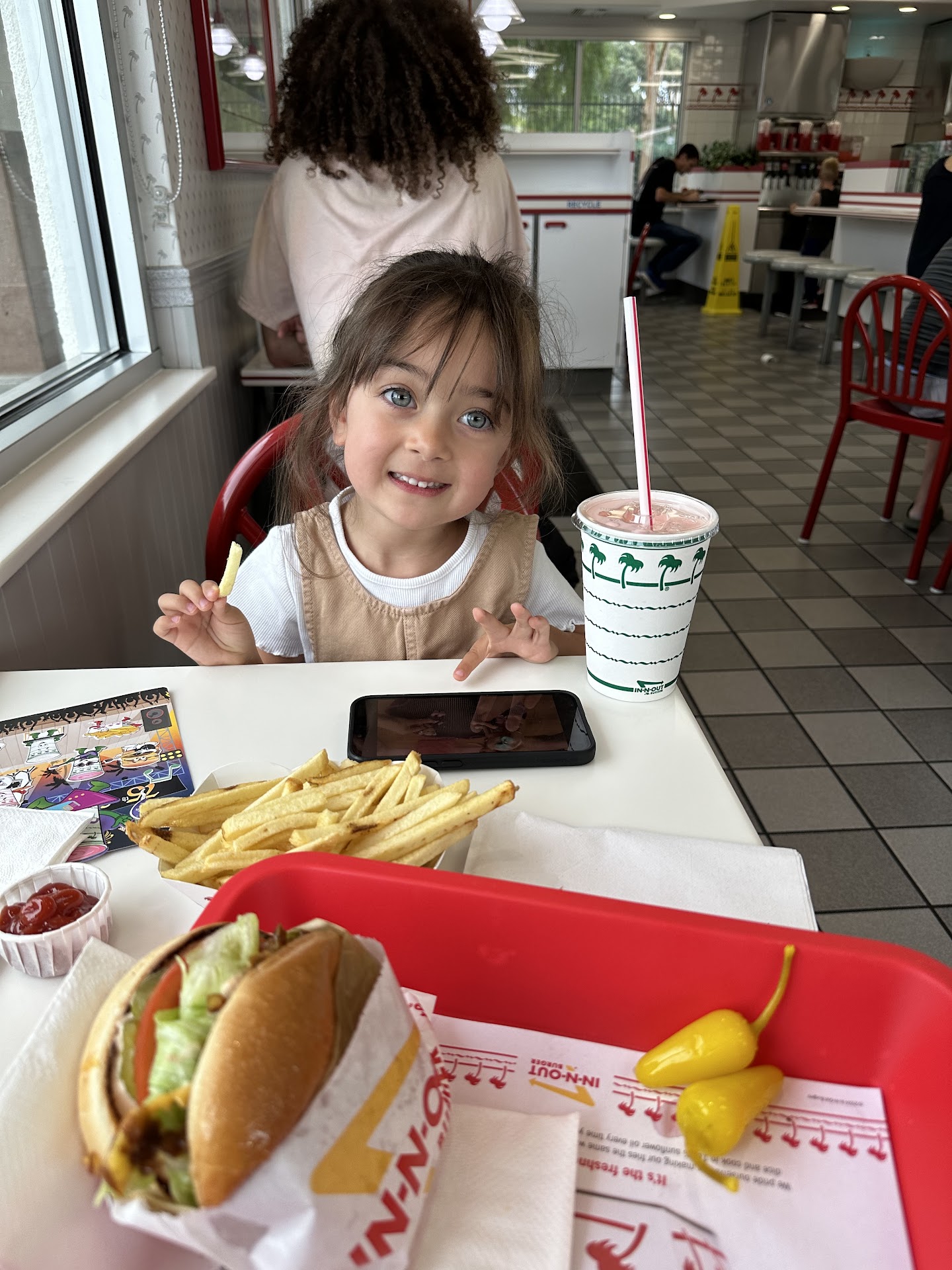 This is an awesome place to go get a hamburger and a milkshake. If you go through the drive-thru you will see people chopping potatoes which they make fresh french fries with. Although their fries are fresh and that is awesome they're not that tasty they're kind of boring and dry so I recommend asking for them animal style. If you like In-N-Out Burger and you should know there is a secret menu. I won't go into it here but look it up online. I had no idea that you could order large milkshakes. The other thing about In-N-Out is that they don't have anything else but hamburgers. So if you have somebody who doesn't like hamburgers in your group this may not be the best place for them. If you're a vegetarian they will make a hamburger for you without the Patty and for children they will take the same hamburger bun and make a grilled cheese with it sort of. If you're doing without the carbs they'll give you a lettuce bun. There's no add-ons for these Burgers meaning no bacon, no avocado, and no optional cheese choices. You get American cheese. The Burgers are fresh and made to order and they are constructed quite well with a toasted bun and a thousand island spread they call animal sauce. Eating in your car? They will ask you this if you go through the drive-thru it's just good...