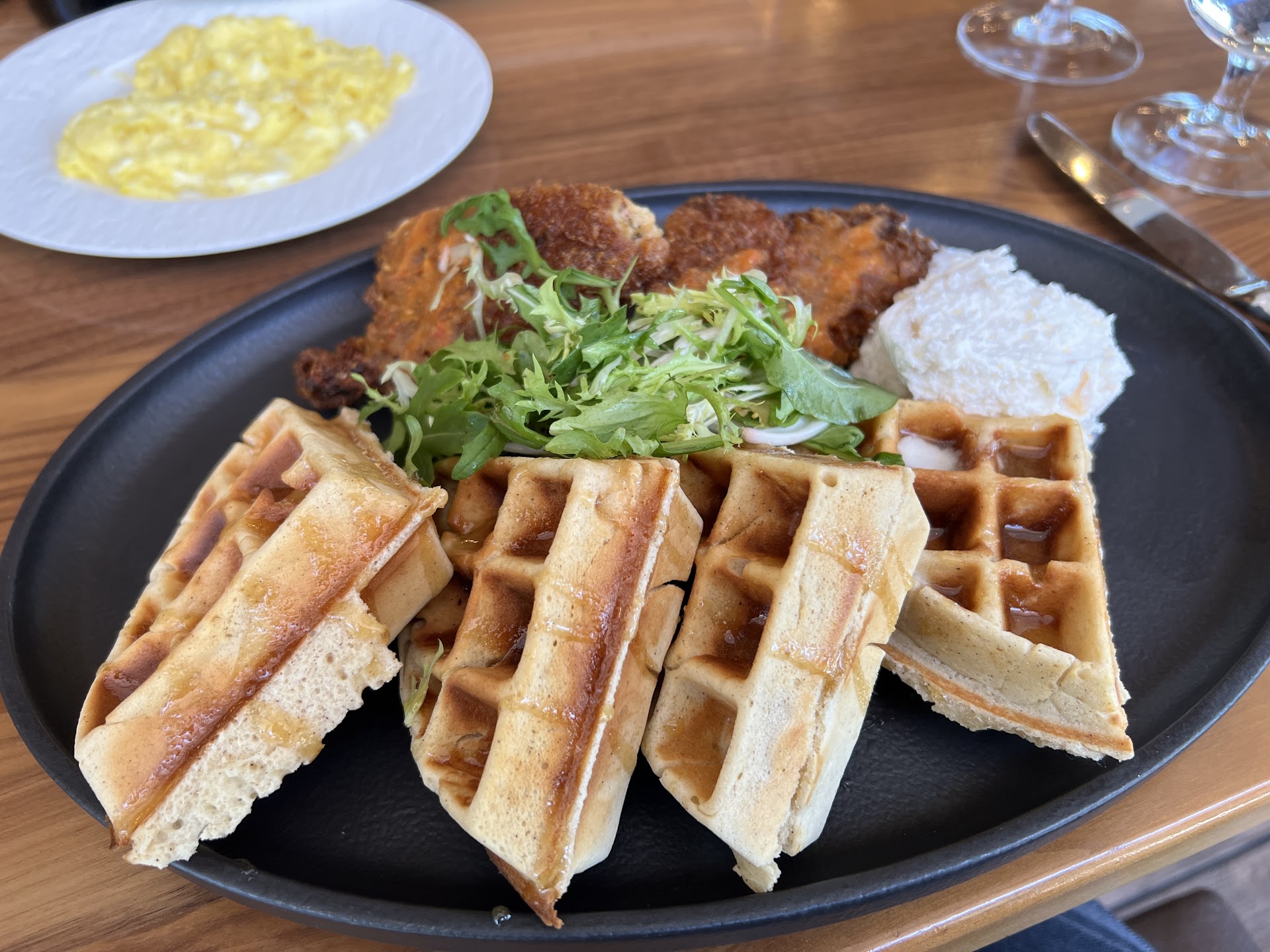 Read moreSunday Brunch with questionable help by waitress. Came here spur of the moment with my friend after a leisurely walk around Annabel lake. We were told about the half-off wine bottle special on Sundays upon checking in and asked the waitress to help us pick a red that was had a fruit node. She first recommended one that was $200 and so we discreetly asked if it could be in the $100 range. She proceeded to ask us loudly if we cared about flavor or price. I was in shock and didnât know what to say so my friend nicely said both. She then pointed us to a page, said it was those choices and never ended up giving us a recommendation. Upon walking away from our table, we looked at each other and were livid. There were surrounding tables and patrons near us and it felt awkward that they heard our conversation. We debated whether to even get a bottle in order to prove a point despite her but ended up still getting one because we wanted to enjoy the afternoon. Our orders of French toast and chicken and waffles were great and we think she realized her mistake because she was more attentive afterwards (we didnât speak to the supervisor in the end, though we wanted to). However, that does NOT excuse her behavior in the first place. Why did it matter that we had a wine bottle budget to consider? This was our 4th visit to the restaurant (dinners and happy hour) and weâve never had a bad...
