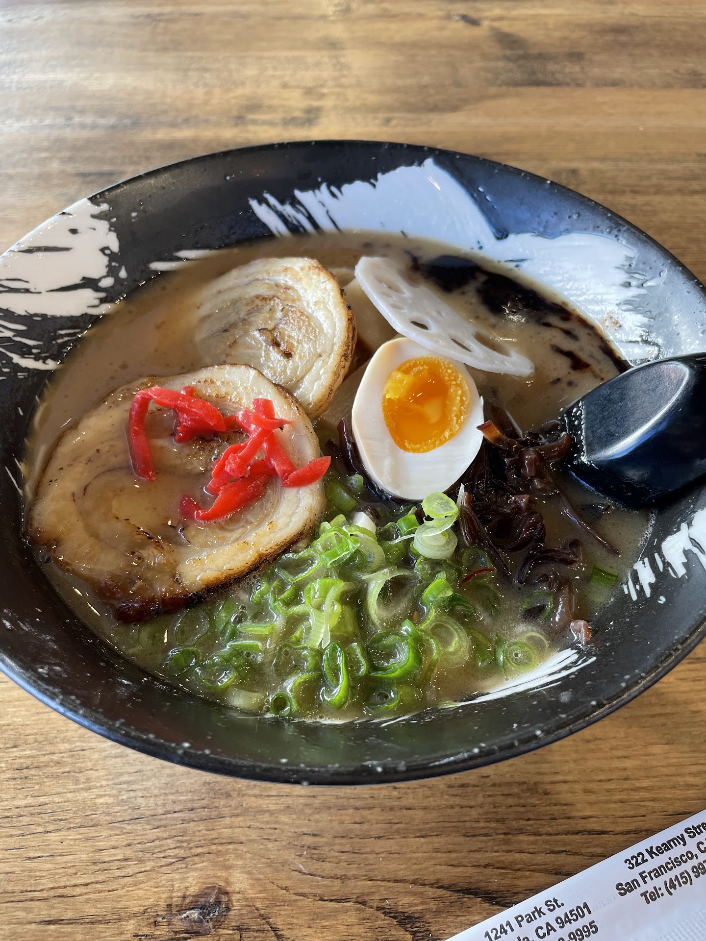 In my husband's video of noodles, he found a plastic wrapper (cling or Saran wrap) in the soup. Told the staff about it and they give him a fresh new bowl. His new bowl was hot! Can see the steam and the pork looked good this time, it was soft and a bit char, and it was soft too!!