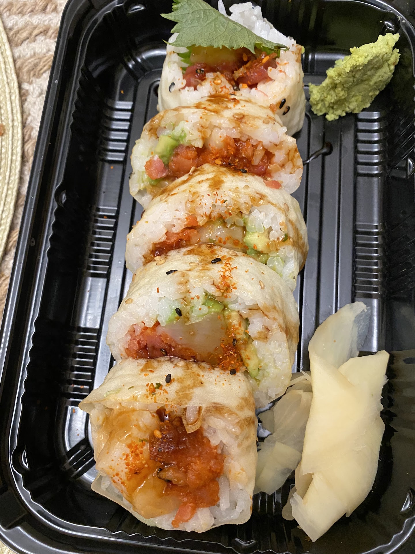 Inside was clean and nice but it was hard to understand the waitress because she spoke really fast. Also the man behind the sushi bar was super loud.