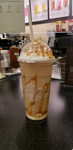 Conveniently located to get your Starbucks fix either while or after shopping in Target. Super friendly baristas. Minuses: Does not serve the complete Starbucks menu. For example, only the Strawberry Smoothie is served here. And the tables are not frequently cleaned.