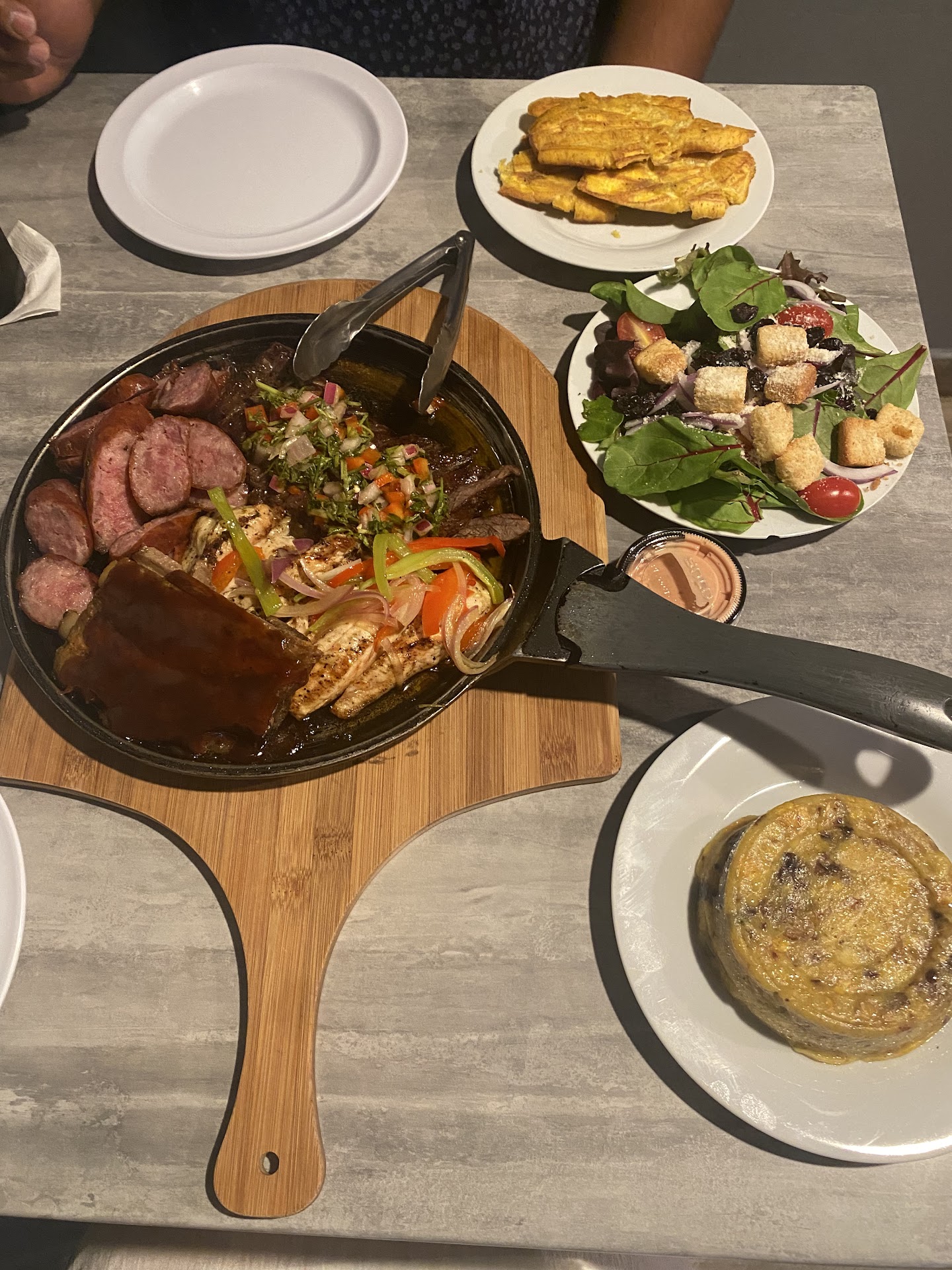 Read moreFood was good. My youngest son ordered wings from the kids menu and Jr. Ordered a hamburger. My fiance had mofongo relleno de pollo and I had the carnivorous (ribs, steak strips and pork). The pork's flavor was not great at all and the steak strips were over cooked and dry... Very disappointed with the lack of customer service. Waiter was Yadiel, very friendly but just trying to hard to earn his tip instead of making us feel comfortable and enjoy our food. EPIC FAILURE! We were encouraged to order a specific appetizer (surtido for 2 people) that arrived 7min after the food. Our waiter said "the cooks are killing me today" like he was not responsible of taking care of us. I said that it wouldn't make sense at that point having the appetizer and our waiter said "oh no worries, I will give you a box so you can take it home" as he walked away. Omg! They did bring the appetizer to the table. When we got the tab, the appetizer was not removed and still untouched on top of the table. I asked kindly if that was adjusted and he said "no, do you still want the box?". If it was just me, I would've just got up and leave. I was so upset! But I decided to no be a jerk in front of my family...I prefer letting everyone know my experience and marking this restaurant as a NO GO for the next time I treat my family. To Brasas Bar and Grill management, take ownership in training your staff. This kid seems like hard worker however your lack of mentoring shows...