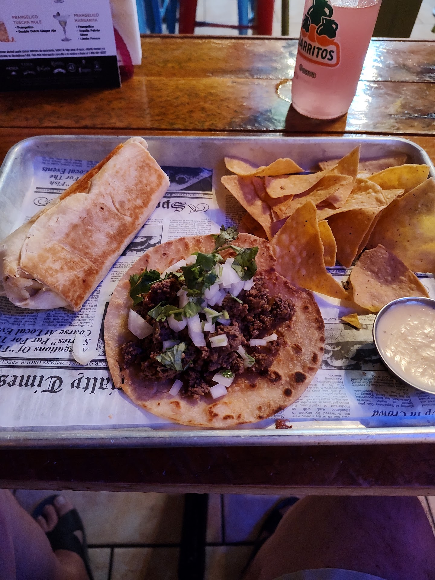 Read moreIba a comer en otro lado pero le di una oportunidad a éste negocio! Tenía las expectativas súper altas al ver sus fotos etc. Primero quiero decir que mi esposa pidió el menú diario (majado con camarones) y sabía espectacular de bueno. Un sabor de abuela,10 de 10. Pero yo que soy amante a la comida mexicana y viví en California y México pues pedí unos tacos y un burrito para probar, el taco de carnita estaba bien pero dulce, es raro. Pero el burrito y el taco de Al Pastor un total desastre, malísimos, al parecer usan el sazonador de Taco Bell y es malo malo, yo que cómo bastante nisiquiera pude terminarlo, me dio asco! Y hablando del servicio fue fatal, eramos los ÚNICOS en el negocio y para tomarnos la orden tomaron más de 13 minutos y eramos los únicos. Luego terminamos y no había nadie en la caja y esperamos como 20 minutos a ver si nos cobraban para irnos y nunca llegaron. Tuvo que mi esposa ir a la cocina del negocio a ver si nos cobraban ya. Y sí, por un menú diario de 11 dolares, 1 burrito y 2 taquitos fueron $40 dolares y los peores $6.50 de propina que e dado, cuando la atención fue pésima (conste que la muchacha es agradable y muy simpática pero tiene que estar atenta al cliente) La verdad no volvería, y si vuelvo sólo le daría una oportunidad al menú del día criollo, pero en comida mexicana es...