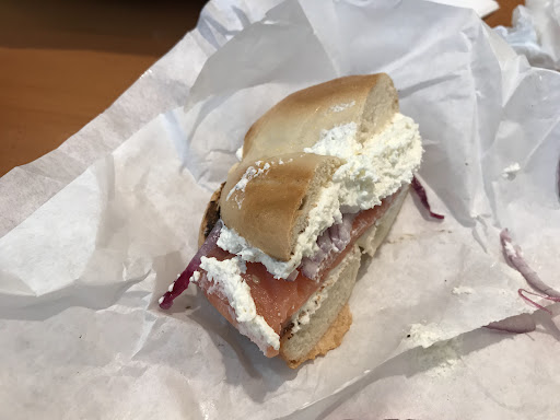 I had the New Yorker which is Lox and cream cheese. Normally these come with Capers but this one did not, I asked for no Tomato which she did take off.