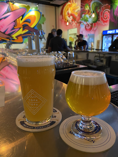 The beer selection is large and runs the gamut. They also have a decent wine selection. I enjoyed the hazy on tap as well as a couple different sours. I also tried a 13.5% oak-barrel-aged beer that was pretty out there and heavy. My German friend was surprised by all the German-stylized coasters and glasses.