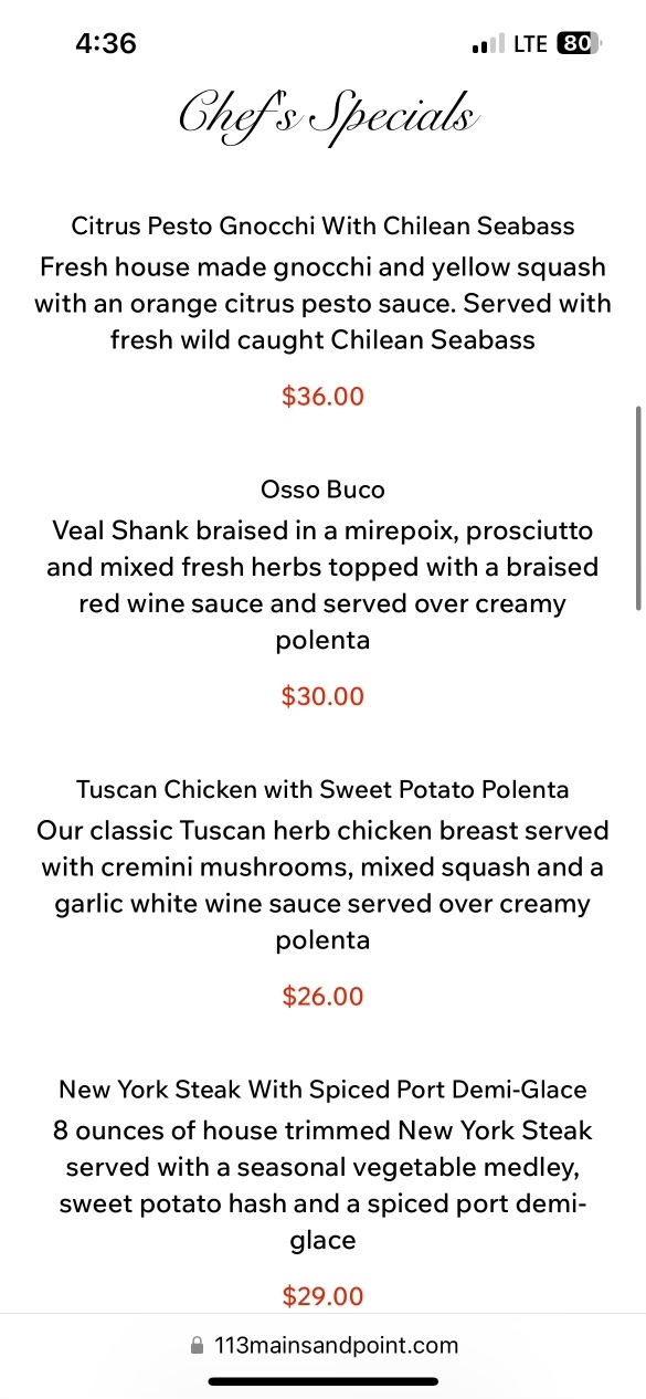 We had the most delicious dinner at 113 Main in downtown Sandpoint and are still raving about it. We were immediately welcomed upon our arrival. The vibe is very upscale, mountain modern yet cozy, which we loved. From the inviting ambiance to the thoughtful, elevated menu, everything about the experience was pristine.