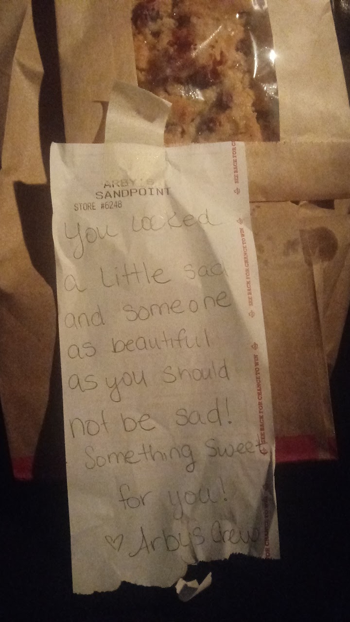 Read morethe customer service of this arbys shines over sandpoint as a pedestal to what customer service in fast food should be. the lady that took me and my mothers order was very polite and created good conversation while taking our order, and getting everything right about it. as we were walking to get seated, our food was already ready for us and the kind gentleman that gave us our food was very helpful as well. the resturaunt itself is maintened fairly well, i just believe customers leave their trash there so i donât blame it on the workers. the place is very clean overall and it has a good atmosphere. i love the view you get to enjoy as you eat your food as well. sandpoint is a beautiful town and eating arbys and dozing off into the sunset with food all around me really boosts my seratonin levels. overall, this arbys is a...