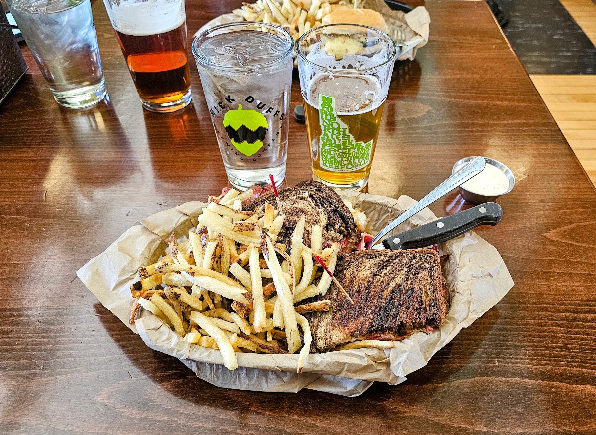 Read moreDisappointingâŚwe went to Mcduffs for dinner last night around 8pm. We knew they closed at 9 so we quickly looked at the menu and made our choices while waiting for a server. The place was busy, but not full. Most tables around us had already eaten. After almost 10 minutes I went to the front desk host and asked if we had a server as no one had come by yet. His response was âyeah, but theyâre all pretty busy, Iâll make sure someone knows youâre here.â He did and finally someone came to take our order. He was a nice enough kid, but did not know much detail about the drink menu. I asked what the rotating sauv blanc was/brand and he said âI donât know, Iâm 19 so I donât really know those things.â I asked him to please find out and weâd order as soon as he came back. Ordered a burger w/fries and friend ordered the curry rice bowl w/tofu instead of chicken. About 40 minutes later we received our meals. (Drinks were gone at this point and he/no one ever came back to see if weâd like another or anything else so I went to the bar and said can our server come by please weâd like another drink) A girl dropped off our meals and asked if weâd like anything else and I ordered a drink, she did not bring it. The burger came with wrong toppings and was tough and dry, the fries were inedible. Dehydrated and like shoe leather. When he came back to bring a side plate of correct burger toppings I told him the fries were really bad and I would not be eating. He did apologize and offer new fries, but after almost and hour there and already a very disappointing experience I said no thank you. I tried to order one more drink again from him this time and he brought the wrong drink. (I ended up having 1 drink total after hoping for a second several times)My friend ate the tofu and the spinach and left the rice portion of her meal as it was gummy and pasty. Maybe it was because it was the last hour, but the whole thing was bad from the start. I did ask for the manager at this point and let her know. She was kind enough to offer to comp my meal and give 1/2 off to my friend. Her tone and demeanor were completely unapologetic, sorry can be said many times, but doesnât mean much when itâs snarky and completely lacking of empathy. Iâd worked in customer service for 28 years and would be upset if my employees gave anyone this experience. I was NOT looking for a free meal! I really wanted a good meal as I donât eat out too often and was very looking forward to it. For reference, I ate there last fall and had the same meal and...