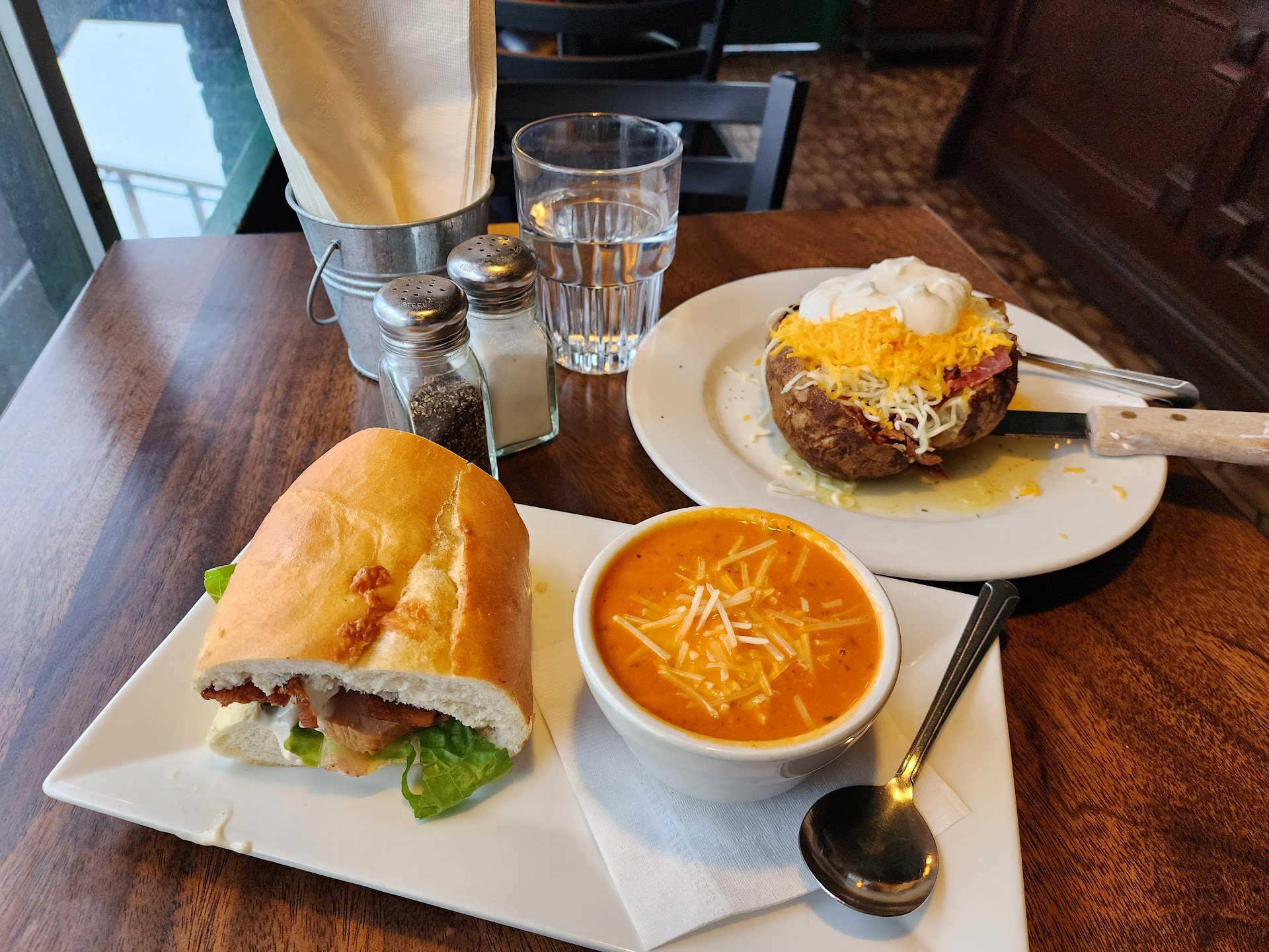 Con's-----The owner Peter McDaniel. The restaurant has no signage concerning seating, no sign indicating "please wait to be seated" no reserved seating, nothing. On Saturday afternoon at 1:35 my wife and I entered and placed our food order, she asked me to secure a table. At the outside back of the restaurant I found one table empty and two others just about to be finished. I sat at the empty table and moments later was asked to leave (loudly) as this table had been promised to a "large group" I got up (awkward!) and asked if I could sit at another now vacant table and Peter said yes. He then returned, asked me if I had placed an order, as tables were only for guests who have ordered and paid (awkward again!) I explained I had but he clearly didn't believe me. Peter walked away but kept looking in my direction as he seated the "large" group of three (3). Still looking at me as my wife joined me he made NO attempt to soften the the interaction. He simply ignored us as our food was served. No----- "may I refill your drink" or "how was everything?" nothing. Peter, were you merely having a bad day? Maybe you were not socialized by your parents or possibly you were raised by wolves. Could you have grown up in a Soviet orphanage and been mistreated? My wife and I drove 65 miles to visit your potato palace and you ruined the experience. What could you possibly have been thinking? A properly dressed middle aged man is asked to leave (loudly) an unmarked table and then you approached again! Yikes!! Do you have hoards of middle age people storming your restaurant to sit at tables?? Good food but a tone deaf...