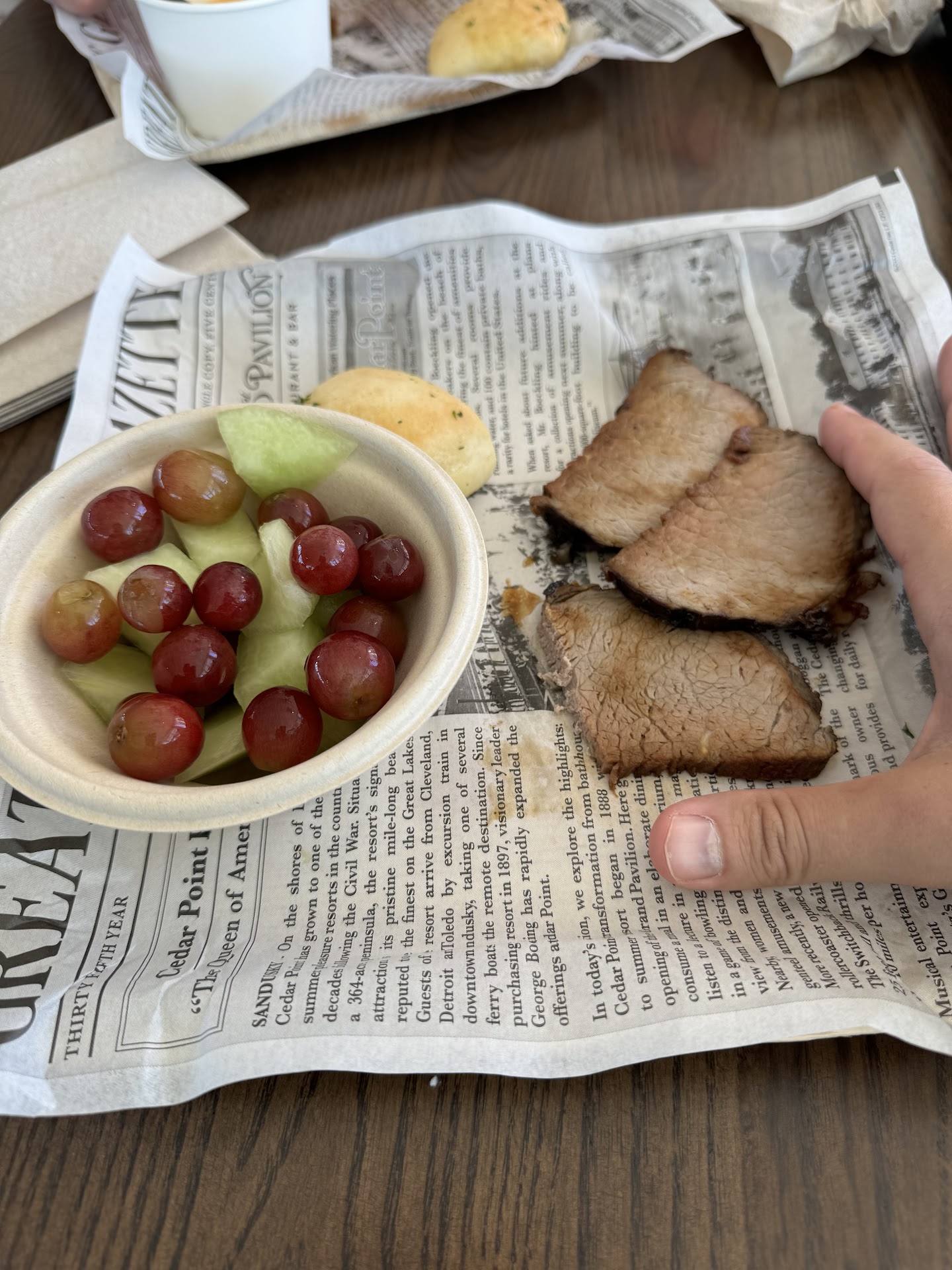 Read moreThis place is definitely a must visit place if ur at cedar point. Me and the fam come to cedar point once a year and we always stop and have lunch here at least once! They have pretzels 🥨 , Mac n cheese, beef, all different meats, fresh fruits and it’s a really nice break from having the typical fried park food like at other parks. They also have a really nice seating area upstairs and they have half booths half tables which me and my sister sit in the booth part because sitting at tables would damage our reputation way to much we can’t afford for that to happen! If ur at cedar point definitely come give this place a try. The outdoor seating area is really nice also. Only downside is the amount of twinks and cute jocks that eat here is very little to none they eat elsewhere. If u wanted some good eye candy while u eat I would...