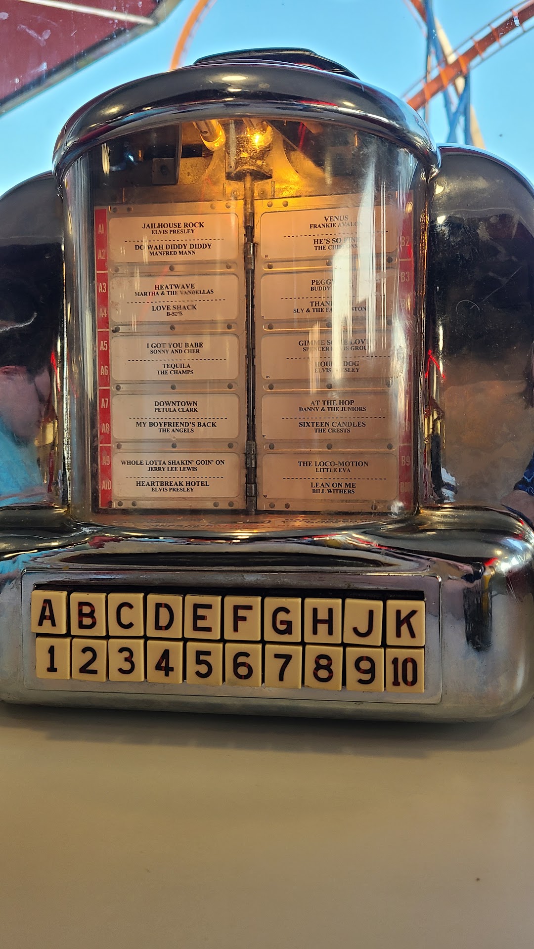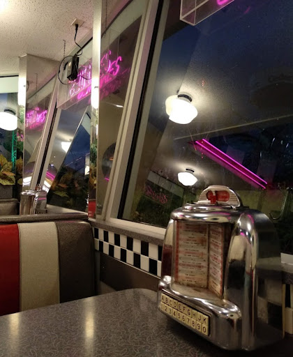 Me and my family come to cedar point once a summer and I ALWAYS make it a point to eat here! The burgers and fries r better than any other park restaurant and the vibes r so diner. I literally feel like I stepped back to the 50s. The booths, the jukebox, and the music all give excellent vibes! The booths fill up fast so come early or just come late at night when the parks about to close. I absolutely love the strawberry milkshake here it’s my favorite! The root beer float here is disgusting it tastes like chocolate lol. The booths r super retro and have their own mini jukeboxes. Now there is a trick to this place not many people know about. If you yell JUKEBOX really loud u can get a free meal. Seems weird and awkward but it worked for me and my friends. They also have live shows where the employees jump out of the retro cars and start singing oldies hits. So much fun to watch. I can’t wait to come back here for the burgers and the strawberry milkshake. Last time I got a milkshake as I was leaving the AC unit blew my cherry off the top and a cop behind me stepped on it and I cackled super loud and ran off 😂. The service is typically good but the employees can be a little more enthusiastic at times than others. I would recommend this place if ur at cedar point. Lots of cute twink guys come in here as well. Good...
