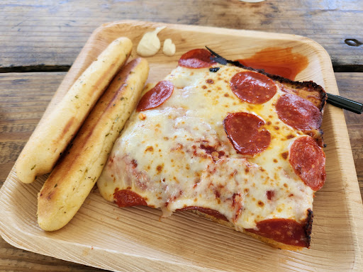 First off, the service was really good, there was plenty of seating, and the utensils and condiments were well stocked. The only downside was the pizza and the bread stick. The photo makes it look decent. It just tasted like one of those homemade pizza kits. It was mainly the dough. It was like taking white bread and compressing it together. There were some caramelized edges, but only on the top. The sauce was not too bad, nor was the cheese. It's mainly the dough in the pizza and the breadsticks. I asked my wife how she liked it. She said the same thing I was thinking and said 3/10. It's not awful, and you may love it, but there's better options, and if you don't have the dining plan, just forget about it. Leave the park for an hour and get an amazing extra large pizza...
