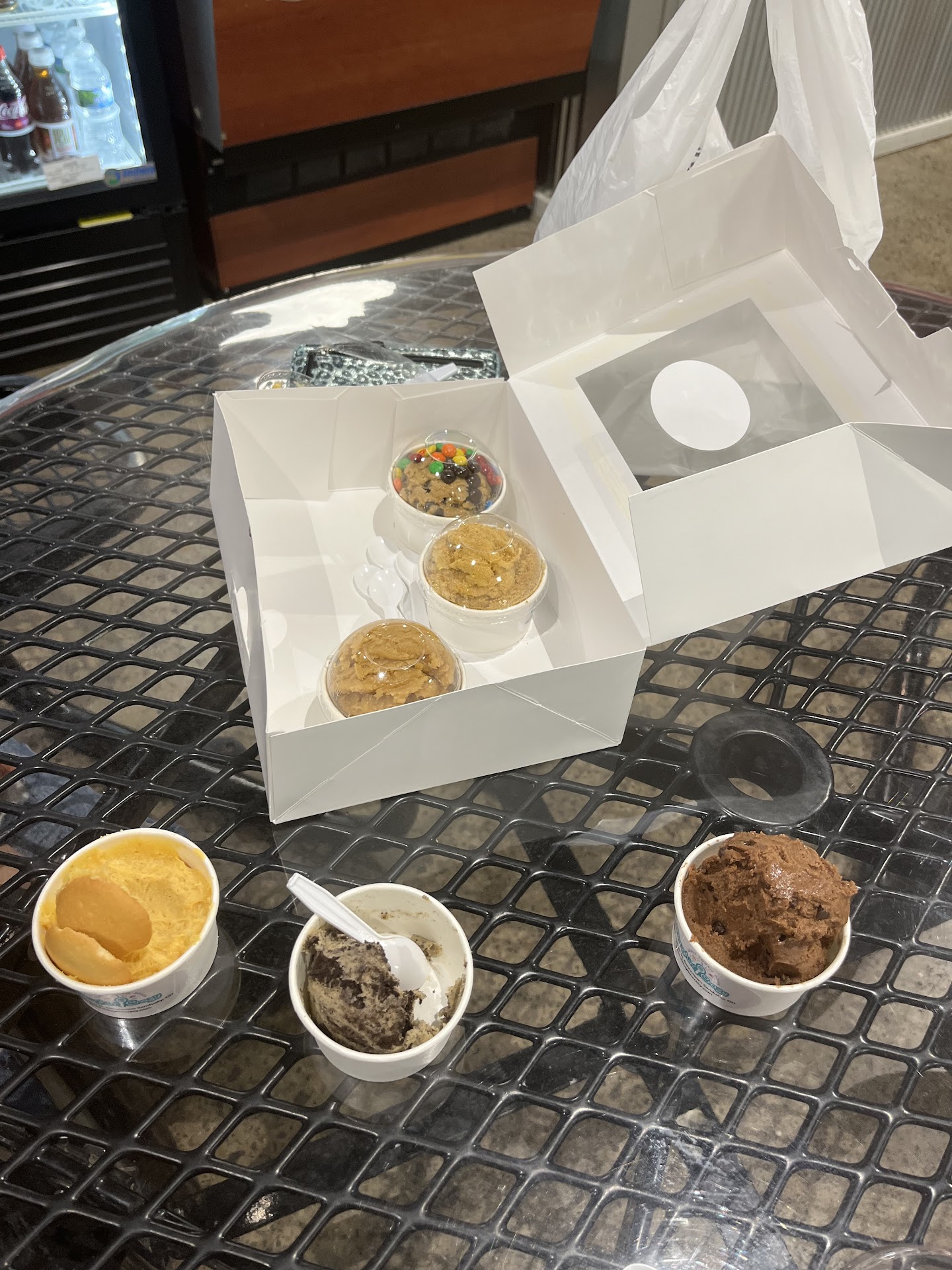 Read moreThe cookie dough was really good. No complaints on that but I asked if they had water and she said she was out of bottled water and I asked if she even had just a cup I could use told me that there was a water fountain down the hall. She filled it up with tapwater, and then proceeded to charge me two dollars for a cup with tapwater that had grass and dirt in the water or in the cup. I don’t think that was right by and I didn’t see it until we left. She should’ve at least said that she was going to charge us two dollars for a cup with tapwater...