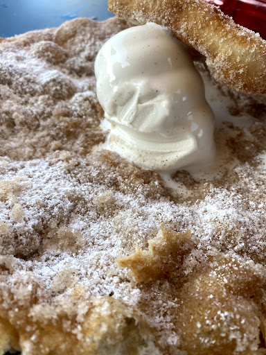 Read moreElephant ears (giant piece of friend dough) with cinnamon sugar, powdered sugar and vanilla ice cream! Customer service was great. I asked for something different then what they handed me and they gladly made a new piece. Excellent variety of toppings and they were quick to correct a mistake for my friend. She was charged extra for her toppings that were confused for another item. The manger came right over and corrected it. Great place for a snack. Despite the long line,...