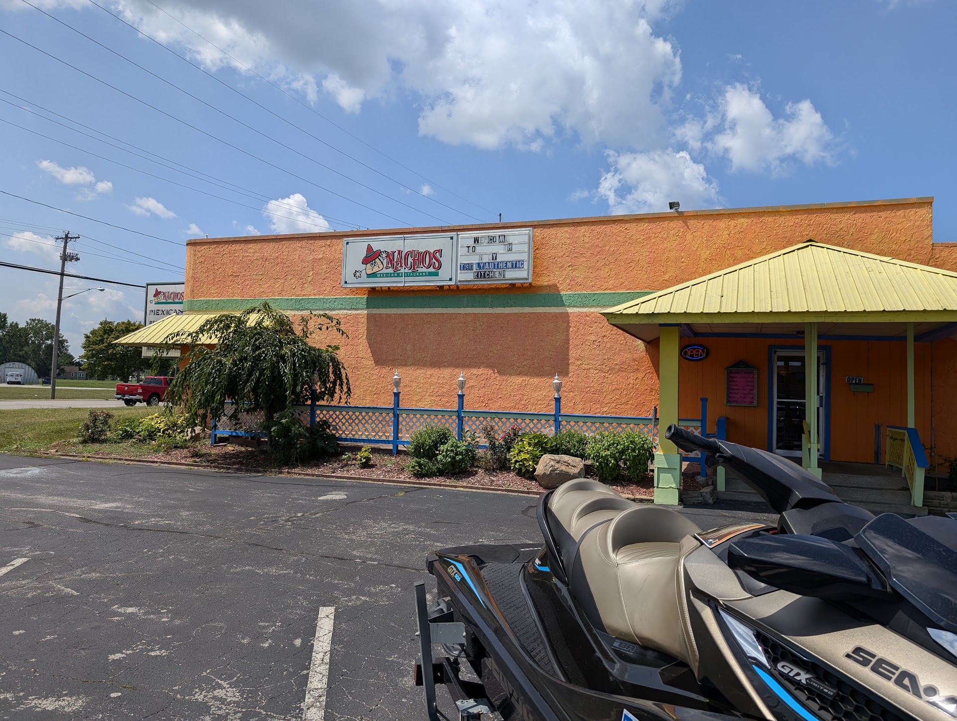 Thankfully Nacho's Mexican restaurant checked all the boxes. The parking lot allowed us to pull through with the trailer attached without blocking traffic or taking up too much room.