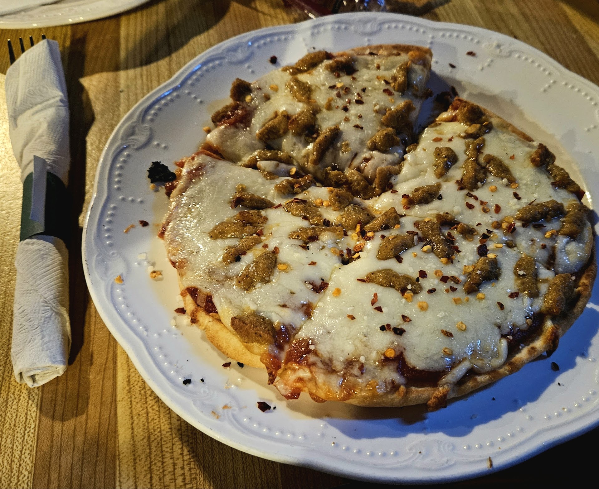 Sunday 7pm, one large table of 12+ people, another 2 tables of less than 4. All done had their food.