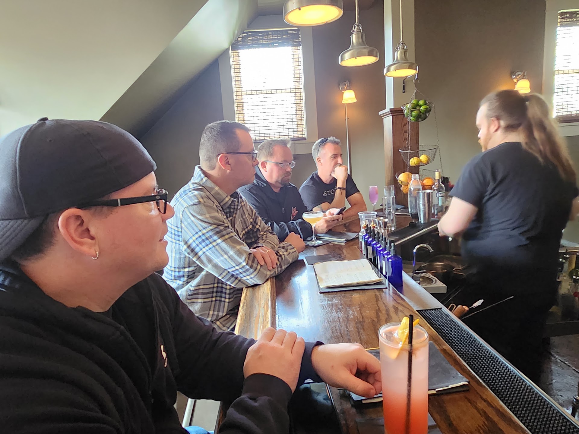 We have just left this establishment, some things you should know before entering: it's quite small, so don't be surprised. If there is a red light outside, it means they're full, seriously, wait,you'll be ok. We were served by Will, and quite frankly, he was fantastic!! It was a show just watching him make these crazy fancy beverages. I partook of the Ward 8 and it was sweet and bitter in all the right ways. My husband ordered the Sazerack and it was quite potent but very tasty. Everything is hand crafted and made to order, including hand squeezed fruit juices made with each drink order. I would definitely recommend this quant little speakeasy, but be sure to enjoy the experience of it all, not just...