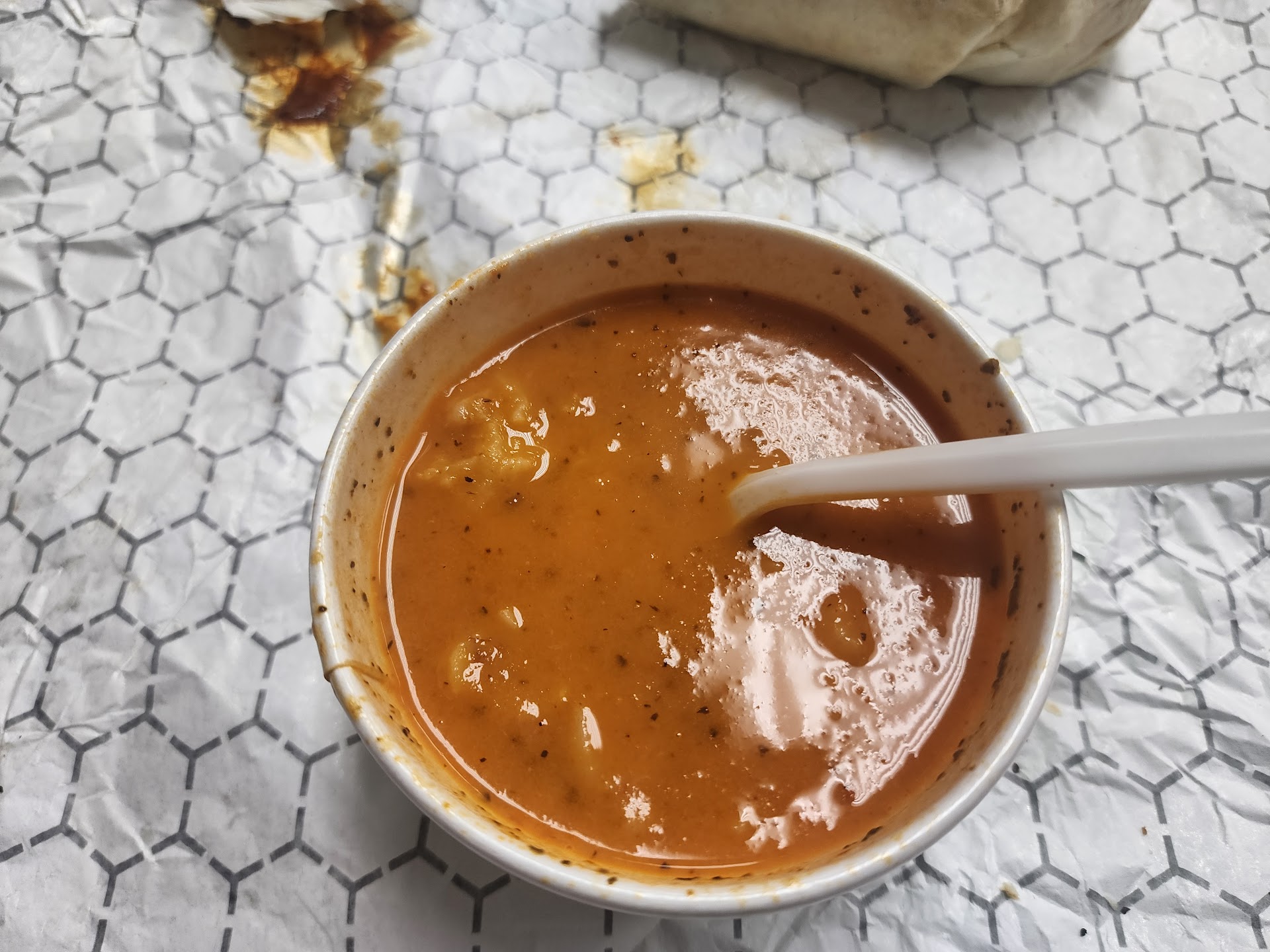 I'm a lobster bisque fan, so I ordered a cup of that as well. It was good but different. It's a roasted red pepper lobster bisque. It says spicy on the menu, but I didn't think it was. I'm glad I tried it. It had a very unique flavor. For me, the peppers just took over the flavor too much. It's still a good soup, though.