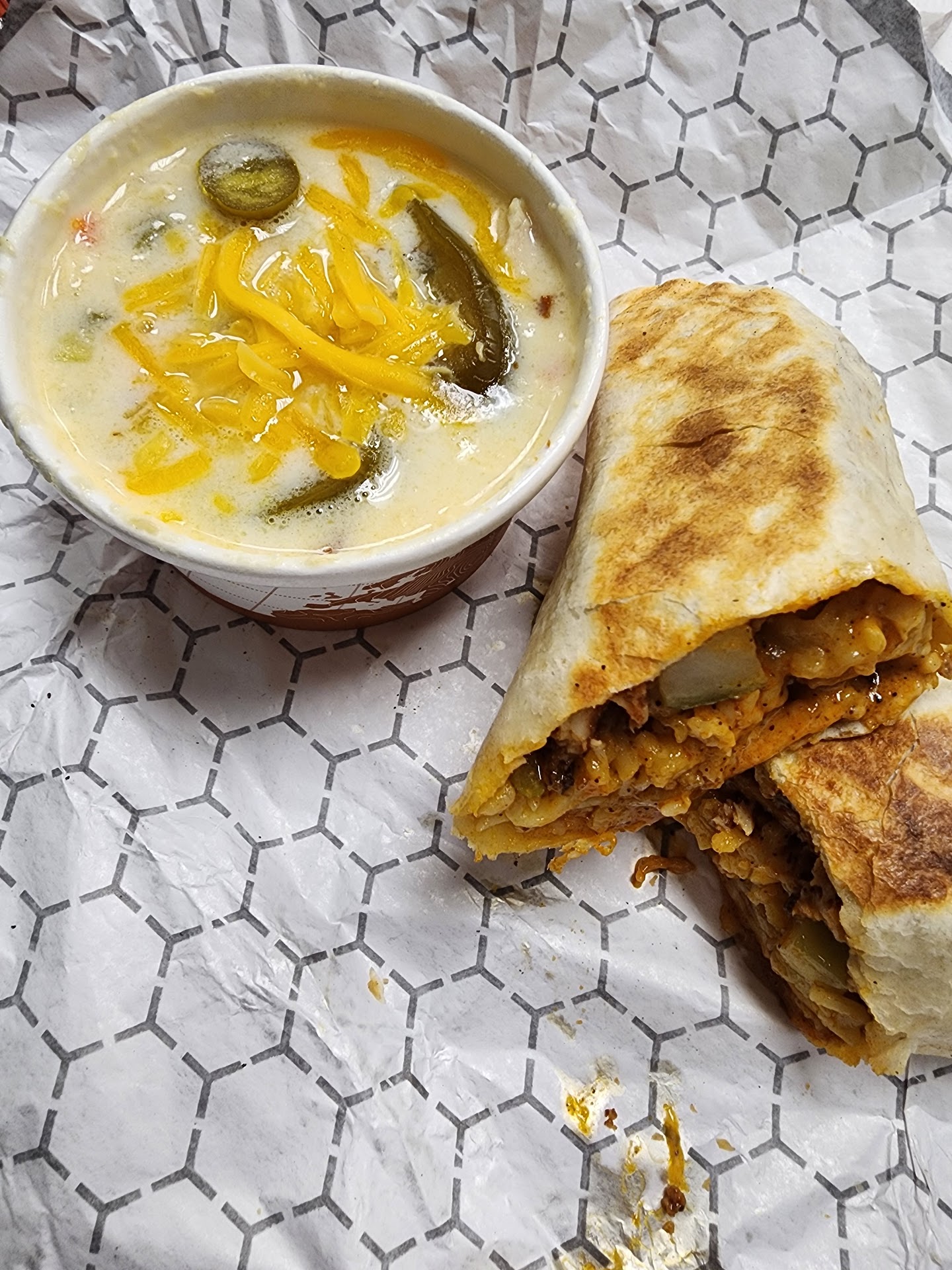 We both ordered the Nashville hot chicken wrap. I absolutely loved it. The heat was great, and the mac and cheese was cheesy and creamy. The pickles added a little acidity to cool down the wrap. I would eat this wrap again any day!! My wife, on the other hand, was about 4 bites into it, and it was way too hot for her. She stopped eating it after that. She also told me she didn't like the noodles for the mac and cheese. So different people, different views.